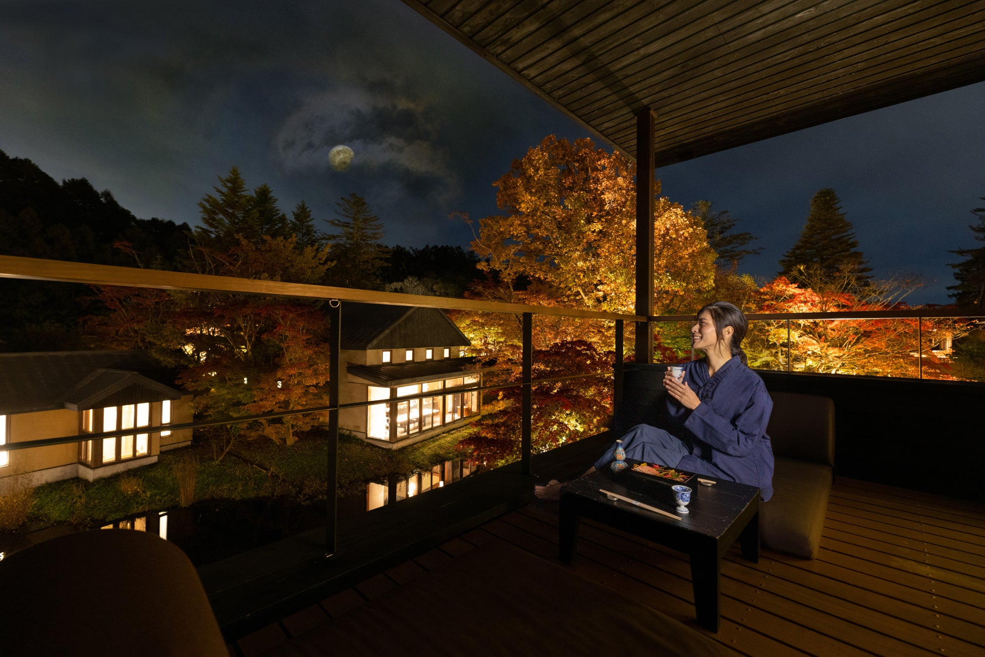 夜空に浮かぶ月を独り占めできる客室テラスにて、1日1組限定の特別インルームダイニングメニュー「秋の月見晩酌膳」を提供します。早朝に狩った茸と酒を味わいながら月を愛でたというかつての贅沢な月見体験から発想した、茸と酒を堪能できる献立に仕立てました。