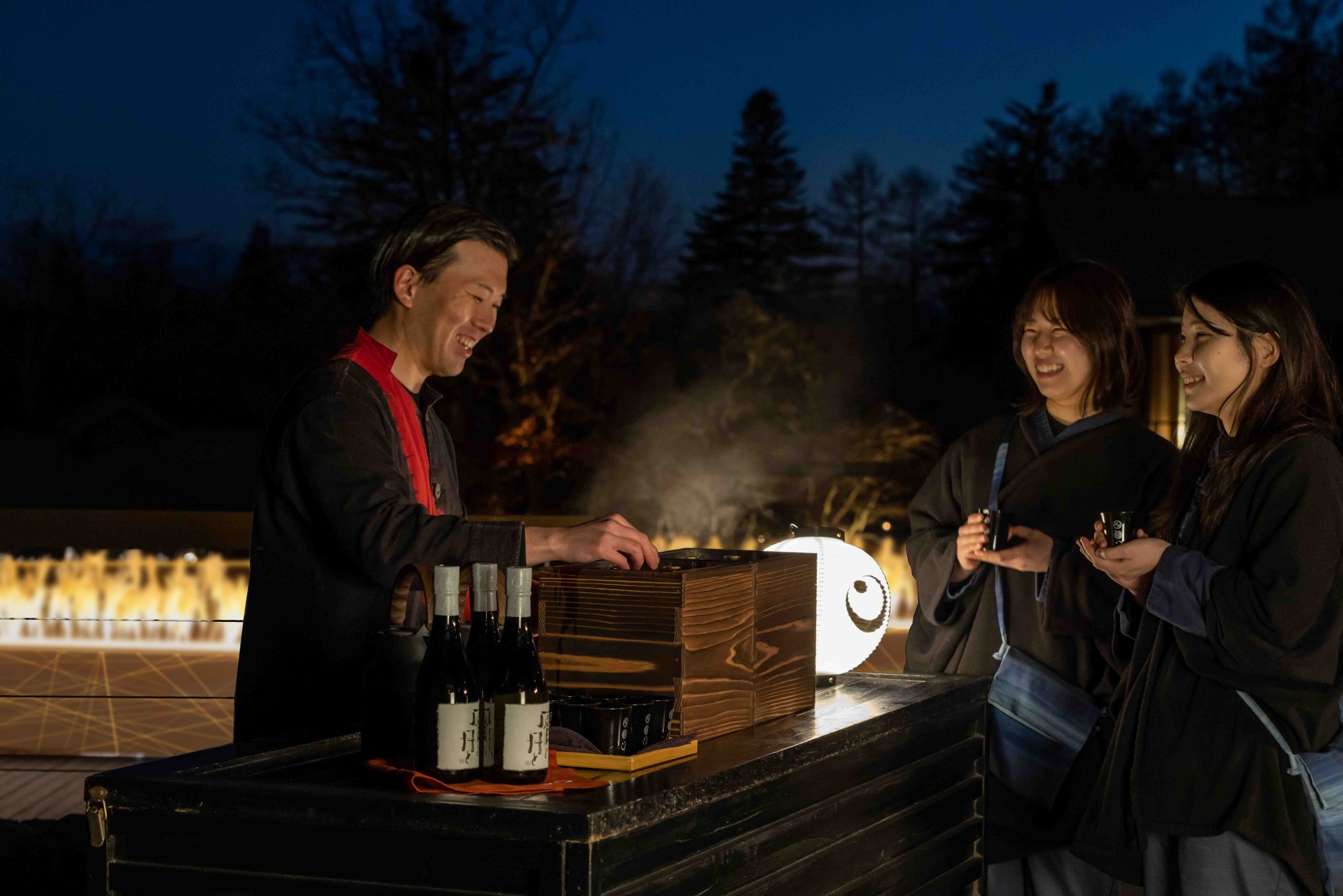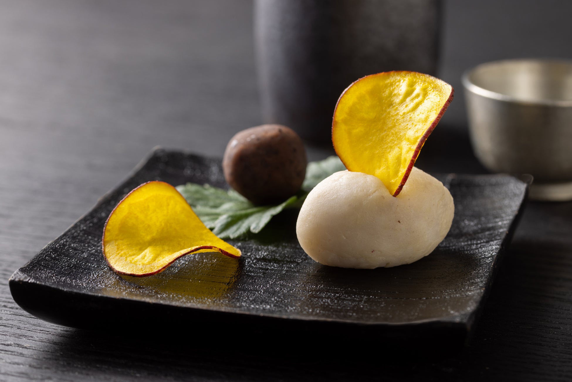 メディテイションバステラスに設けられた特別席にて、秋月の宴を楽しむためのふるまいを開催します。星野温泉旅館に逗留した、与謝野鉄幹・晶子夫妻が月見の際に作ったという里芋団子から着想を得た、本催しだけの月見団子のふるまいです。