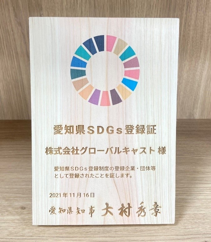 マーケティング支援や教育事業を展開する株式会社グローバルキャスト(所在地 愛知県名古屋市中村区、代表取締役 川口 英幸)は、2021年11月16日(火)、愛知県が創設した「愛知県SDGs登録制度」に登録し、他会員との連携などにより、SDGsへの取り組み推進をさらに強化してまいります。