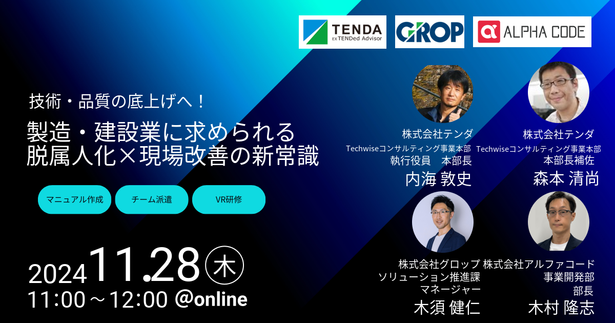 【無料セミナー開催】XRソリューションのアルファコード、株式会社グロップ・株式会社テンダと共同オンラインセミナーを開催