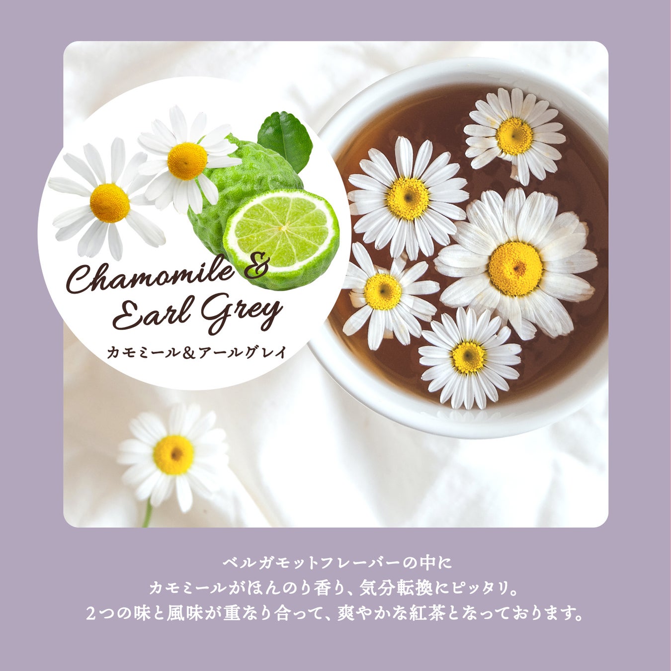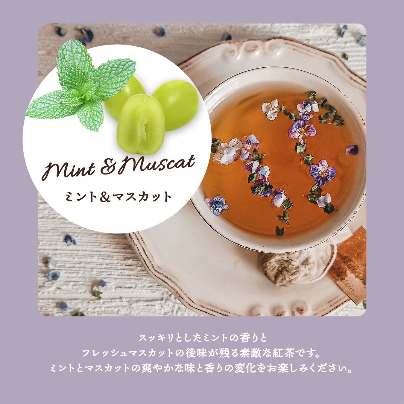 フレーバーはカモミール&アールグレイ味、ミント&マスカット味、シナモン&アップル味の3種類。