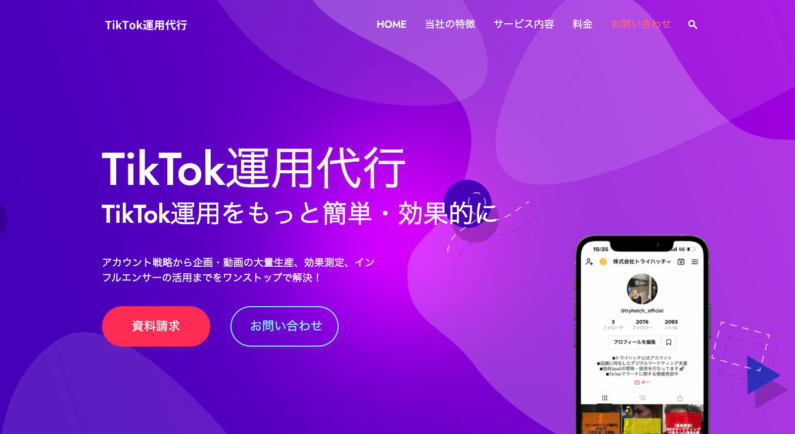株式会社トライハッチ(所在地:東京都新宿区、代表取締役:武藤 尭行、以下「トライハッチ」)は、TikTok運用代行サービスをリリースいたしました。