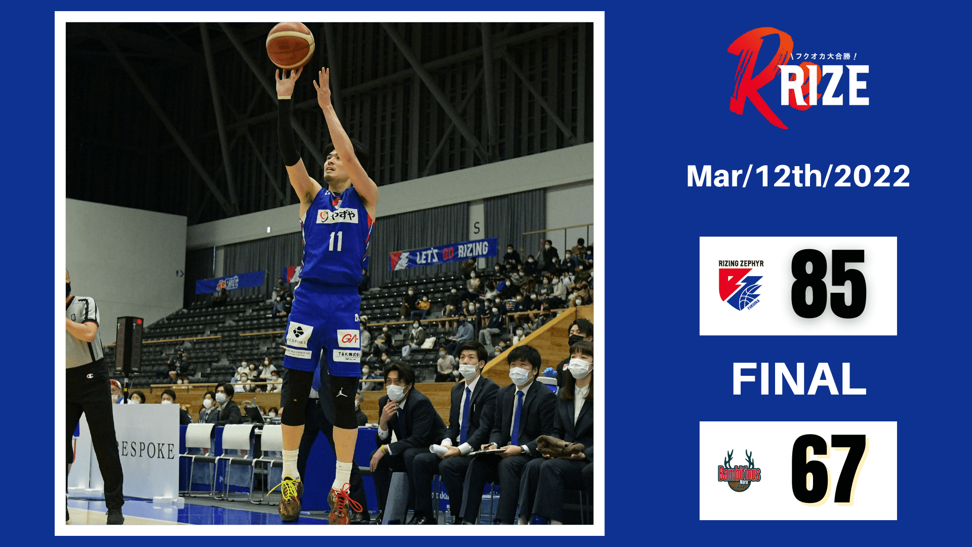 2022年3月12日(土)に開催されましたBリーグ第25節【ライジングゼファーフクオカvs.バンビシャス奈良】において“福岡85-67奈良”の結果となりましたことお知らせいたします。