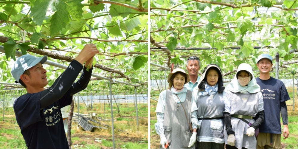 内容:ぶどうの栽培作業(ジベレリン処理・摘粒・袋かけ・傘かけなど)