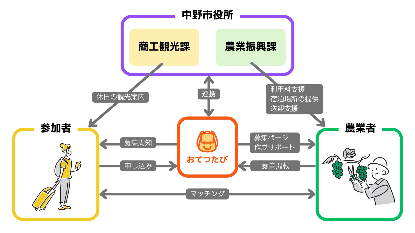 ・中野市は、農家に対しておてつたびへの利用料の補助や、参加者の宿泊場所の提供、送迎、観光案内のサポートを実施。