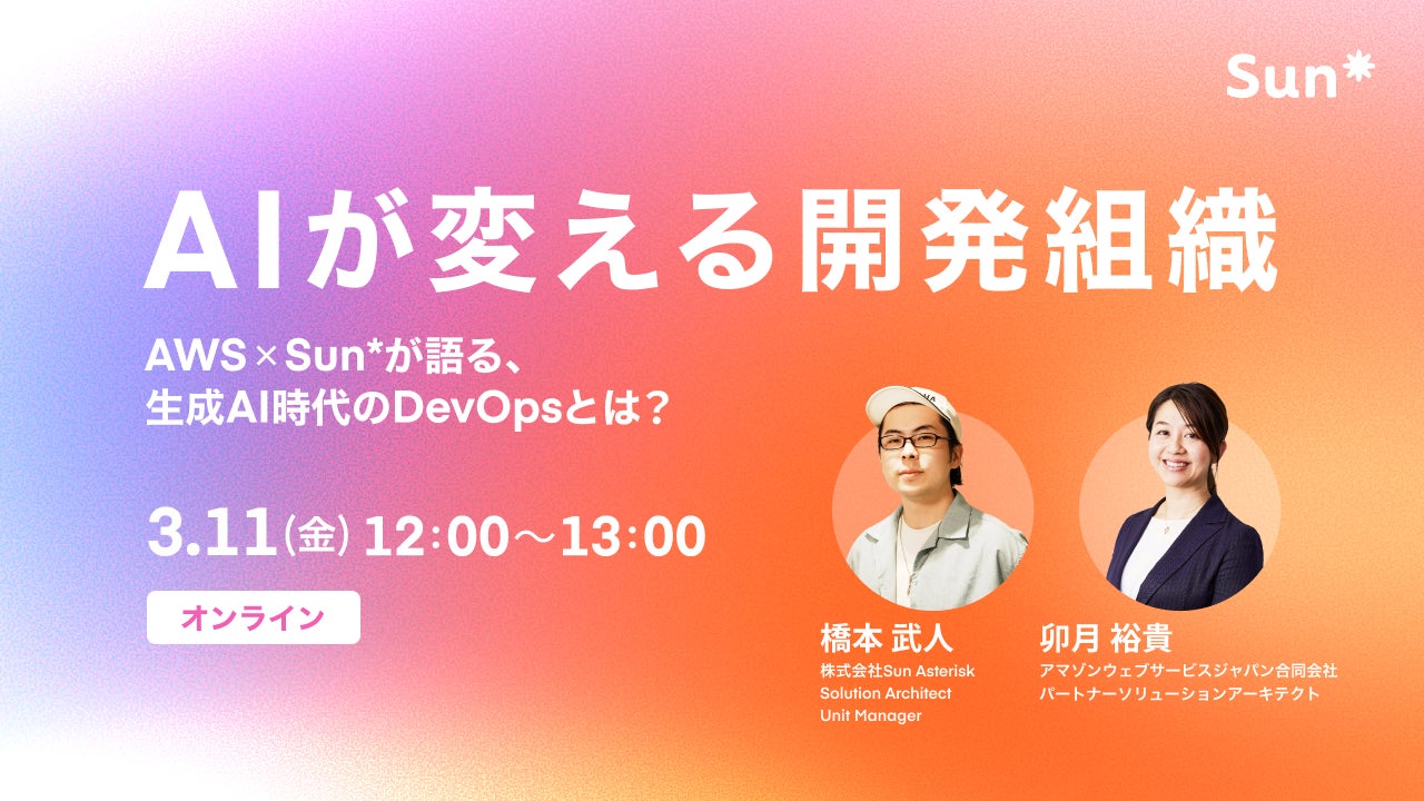 タイトル:AIが変える開発組織 ─ AWS × Sun*が語る、生成AI時代のDevOpsとは?