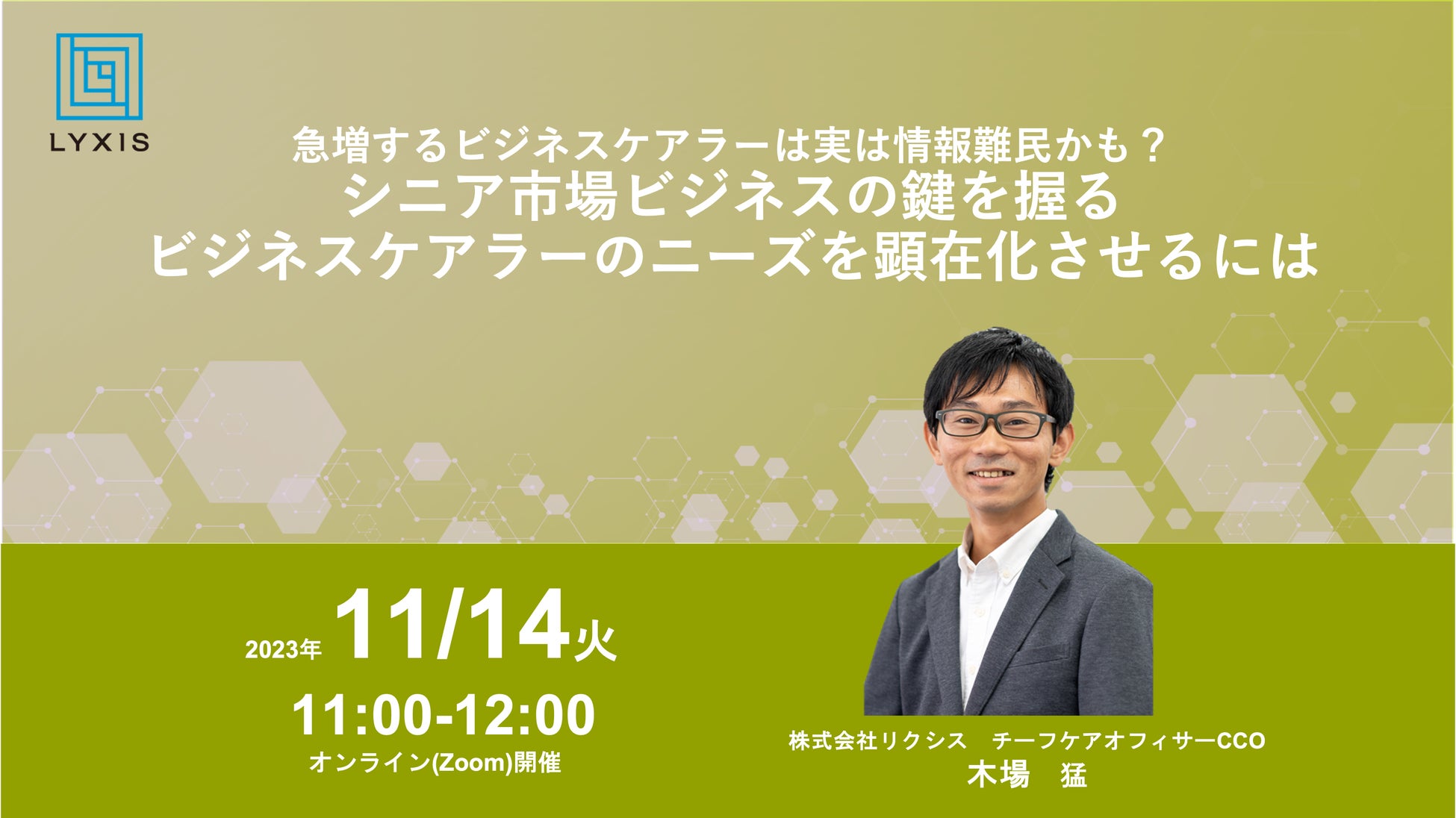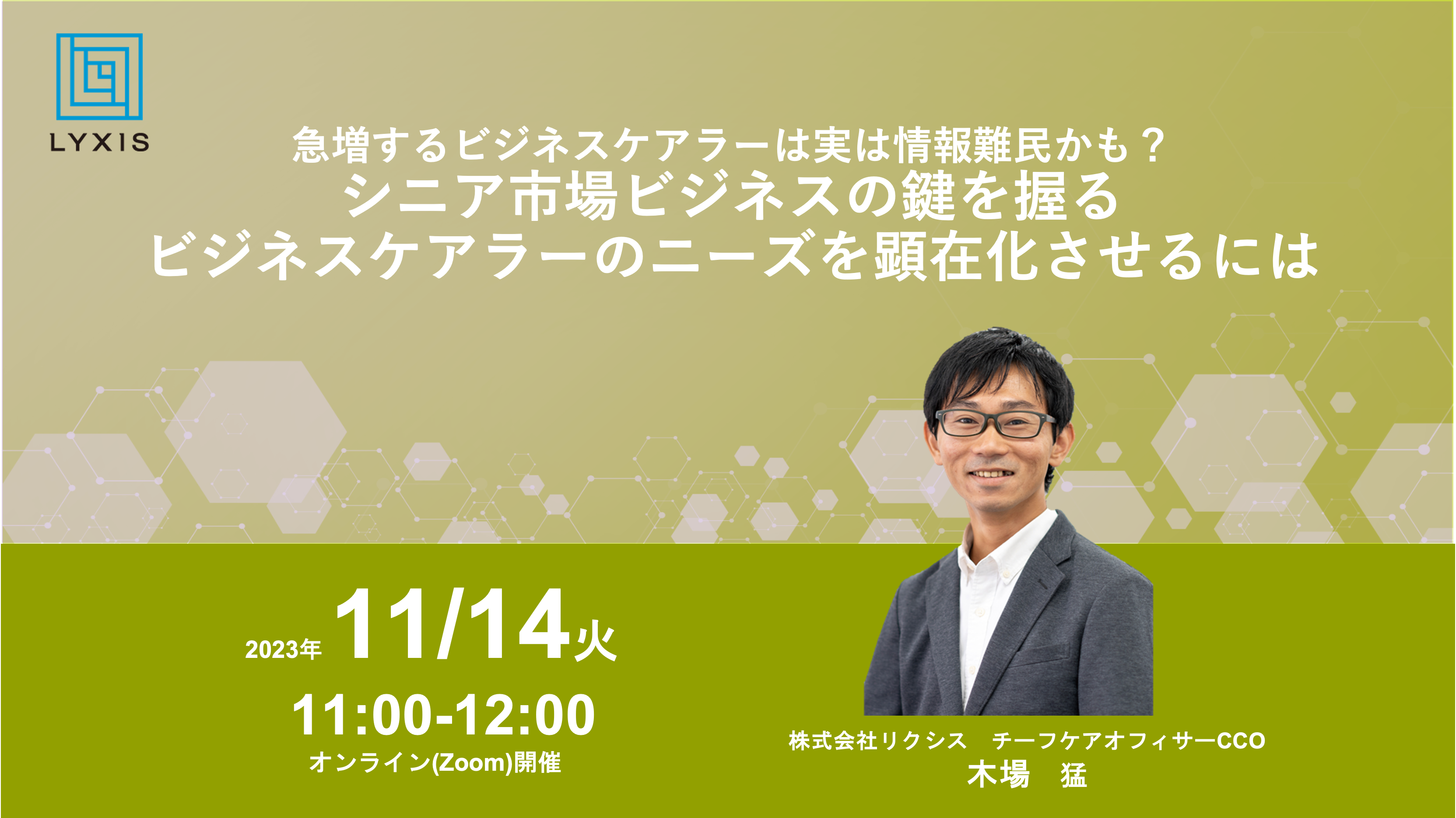 11月14日(火)『急増するビジネスケアラーは実は情報難民かも? シニア市場ビジネスの鍵を握るビジネスケアラーのニーズを顕在化させるには』セミナー開催のお知らせ