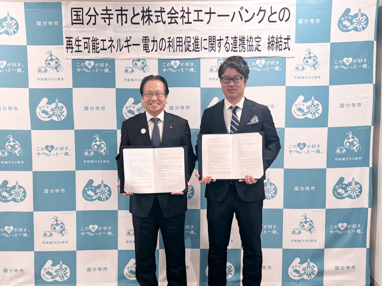 株式会社エナーバンク(共同創業者 代表取締役: 村中 健一、本社:東京都中央区)は、東京都国分寺市(国分寺市長:井澤 邦夫 )と再生可能エネルギー電力の効率的な調達に関する連携協定を締結しました。国分寺市内事業者における再生可能エネルギー電力の利用促進を図るため、当社運営する電力のリバースオークションサービス「エネオク」を活用し、脱炭素社会の実現に寄与することを目指します。