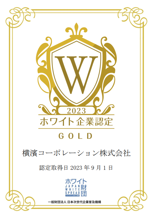 横濱コーポレーション株式会社様を「ホワイト企業認定ゴールドランク 」として認定いたしました!