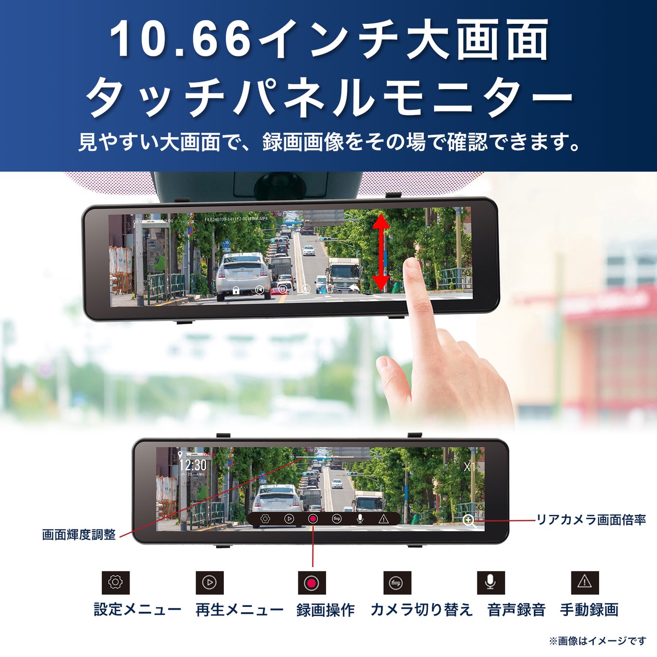 3.10.66インチタッチパネル大型デジタルバックミラー+前後FullHD録画機能付き(AN-R121)の特徴