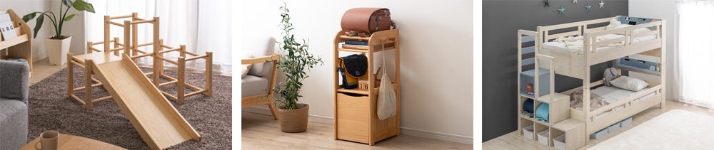 タンスのゲンでは、これまで「現役ママが考えたシリーズ」として、「ジャングルジム」「ランドセルラック」「二段ベッド」「学習机」等、子育て家具を企画開発しています。
