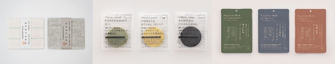 右:美肌温泉と名高い島根県出雲湯村の温泉水を贅沢に保湿液に使用した「フェイスマスク」