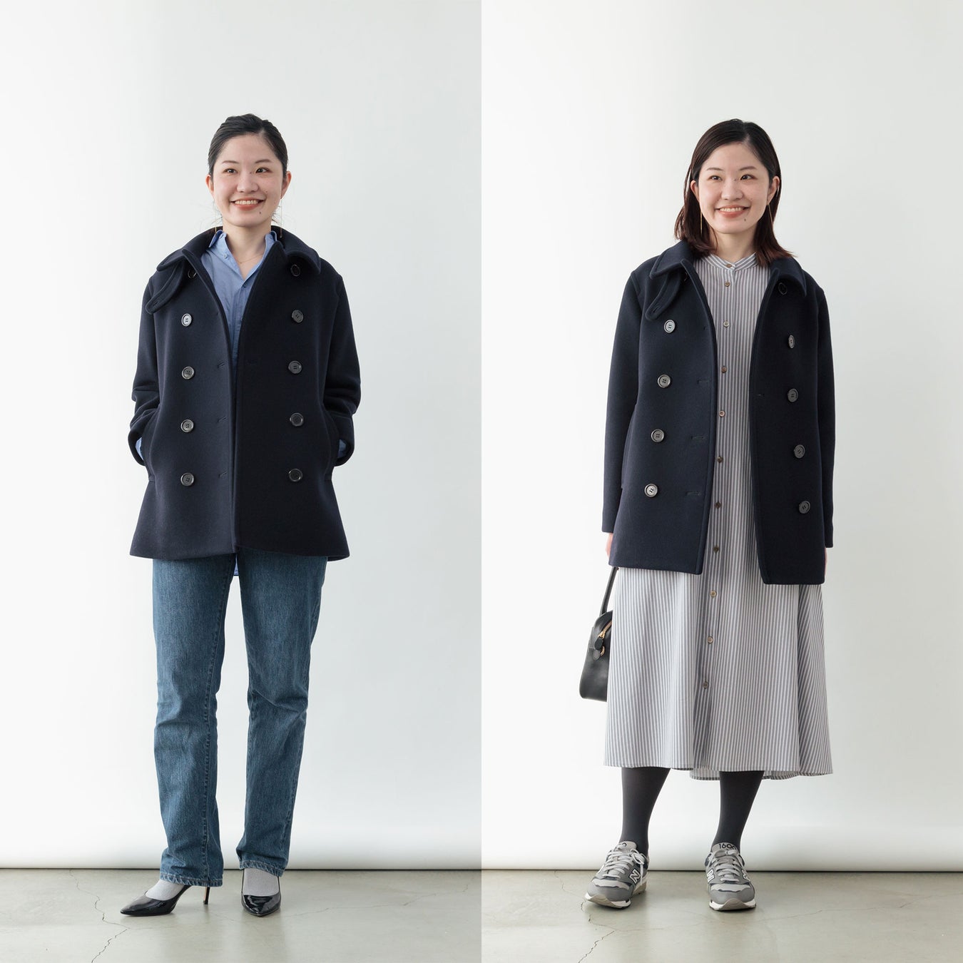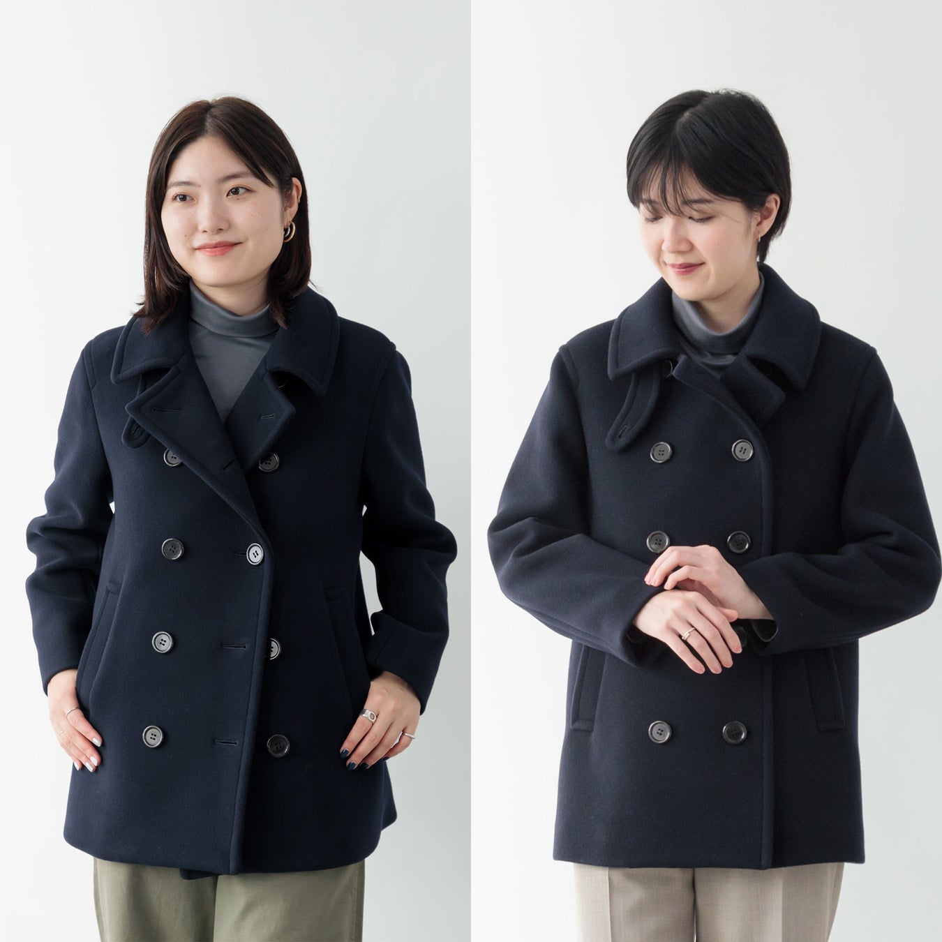 トレンドに左右されないピーコートは、クローゼットに1着持っておきたい永遠のベーシックアイテムが完成しました。