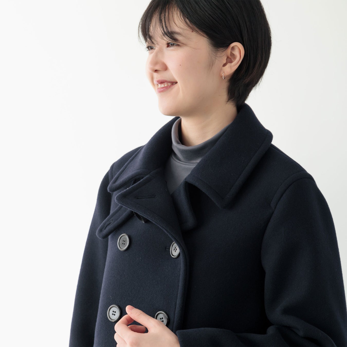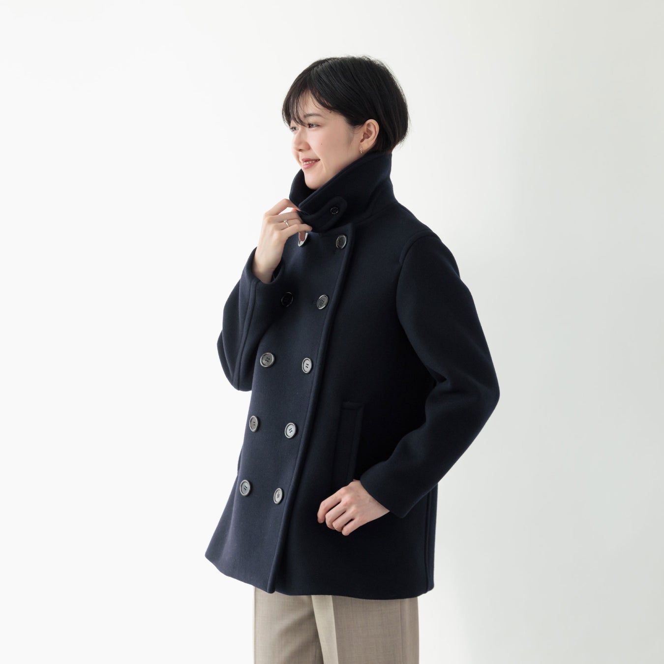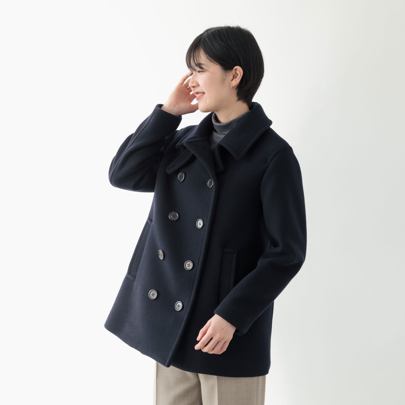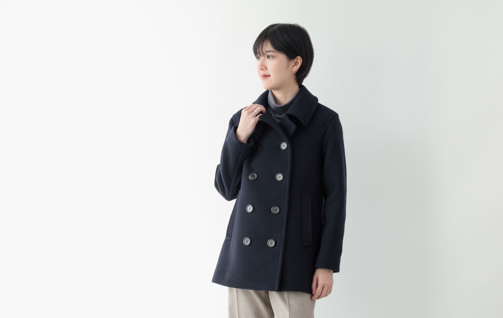 そこで今回、ファクトリエが提案するのは「大人の女性がかっこよく、しなやかに着られるピーコート」。