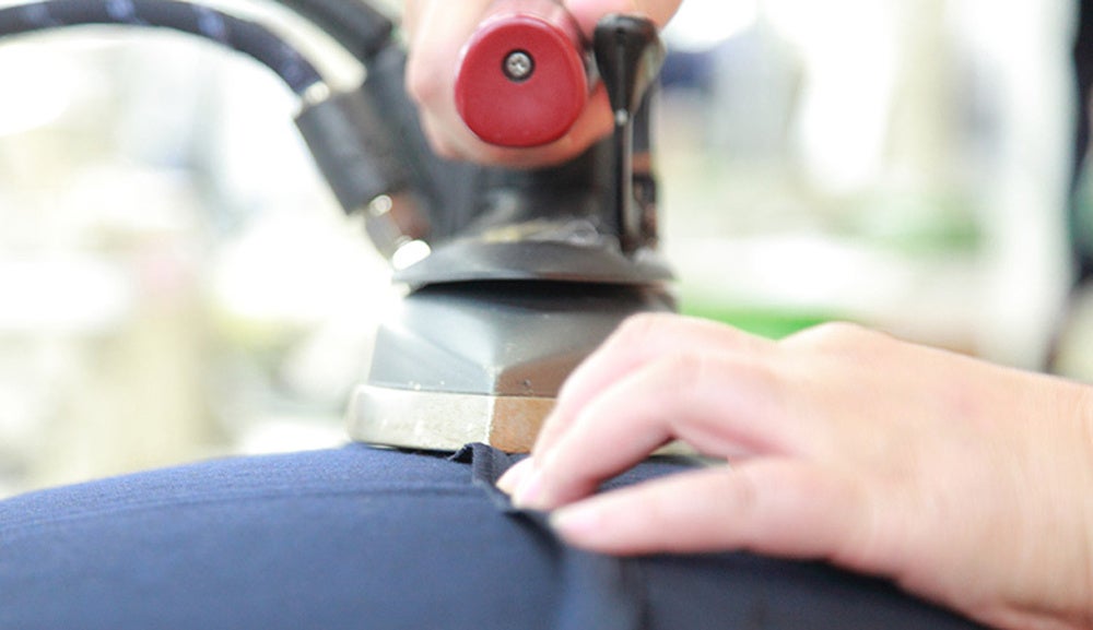 洋服を作る際には、縫製したあとに必ず、シワを伸ばし服の形を整えるプレス作業が行われます。