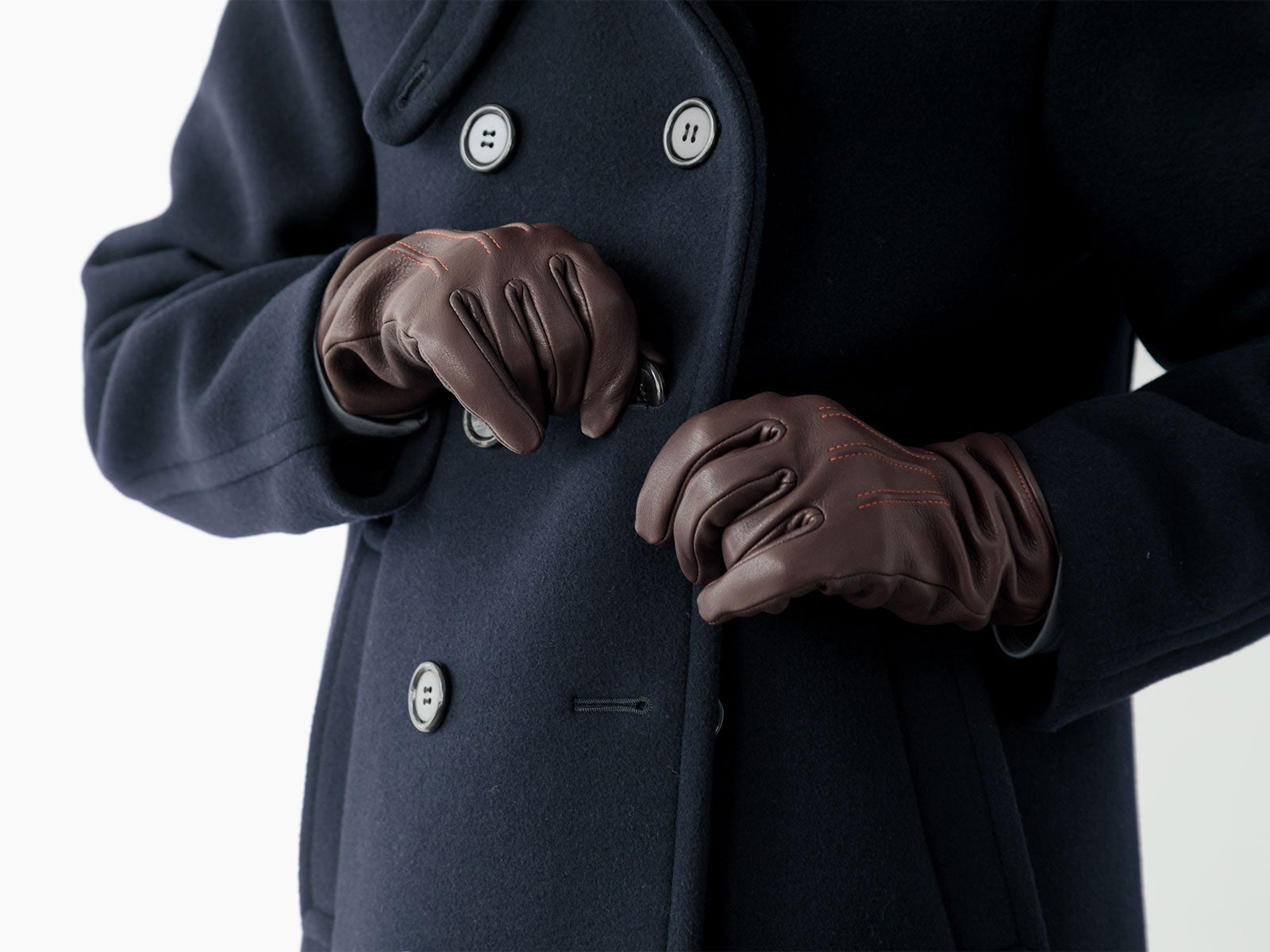 「水兵が、かじかんだ手でもボタンが留めやすいようにピーコートには大きいボタンがつけられた」という説がありますが、現代では手袋をしたままでもボタンの留め外しがしやすいというメリットがあります。