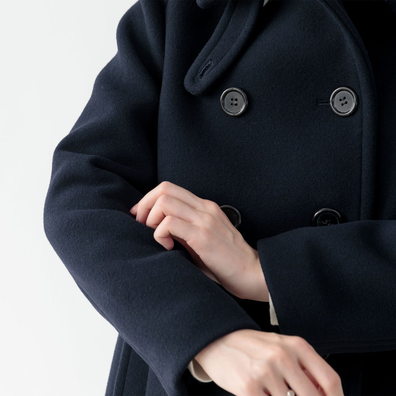 だからこそ、やわらかくしなやかで、リッチなツヤを感じるピーコートに仕上がっています。