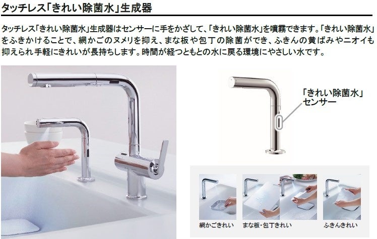 水ほうき水栓LF、タッチレス「きれい除菌水」生成器