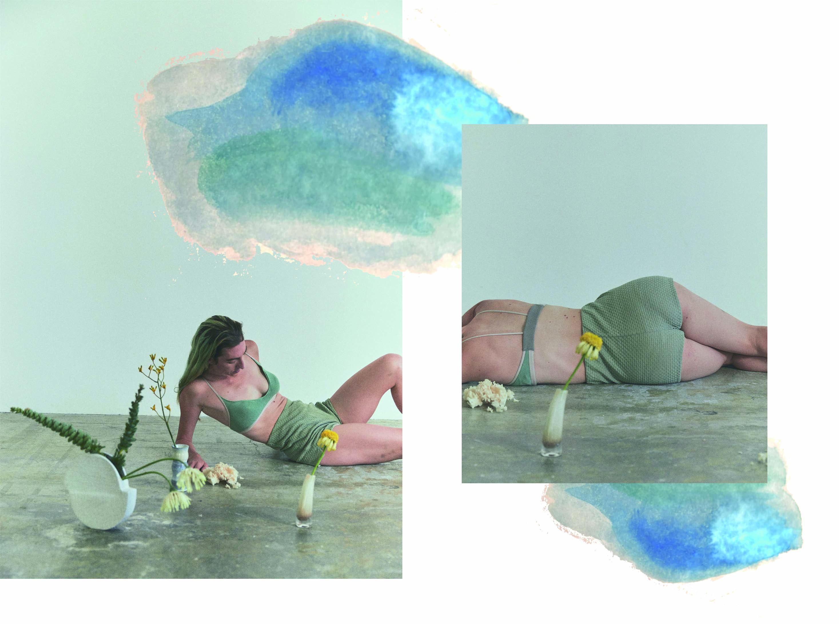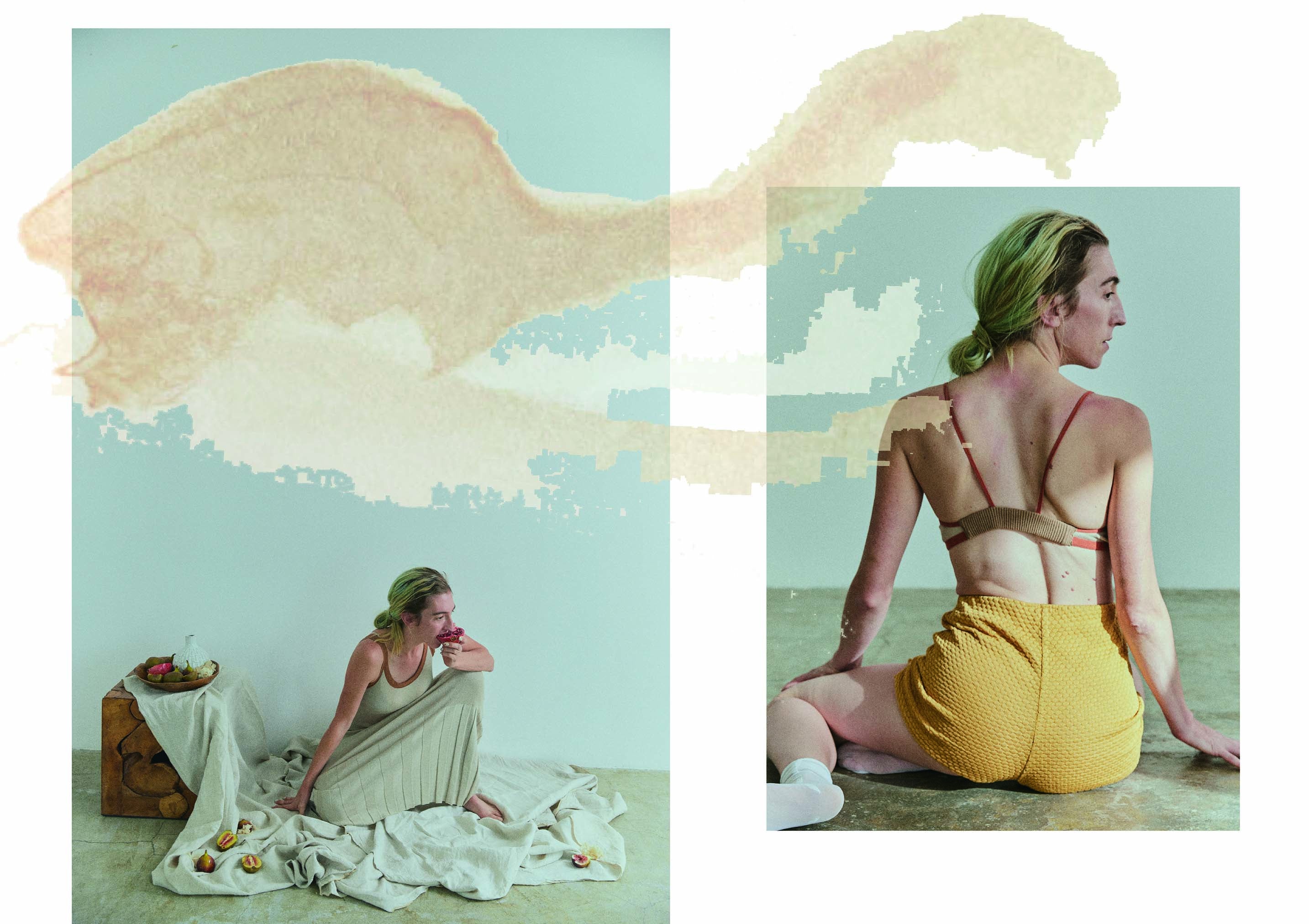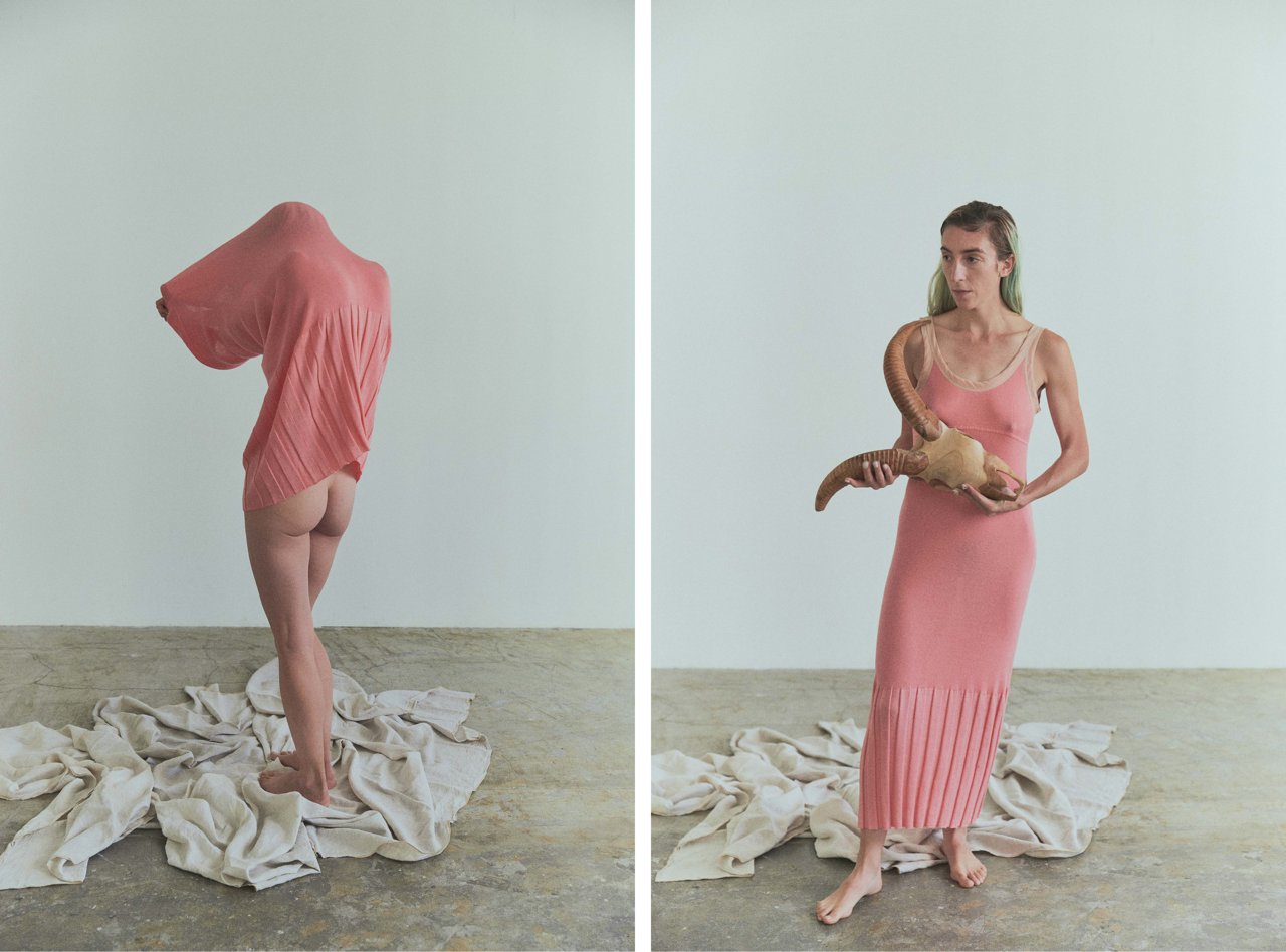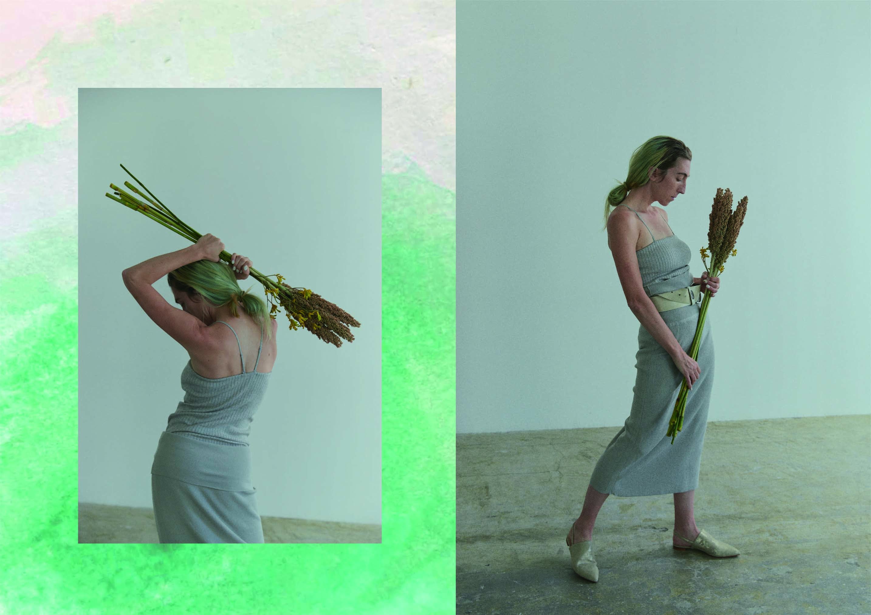 それを叶えているのは、デザイナーの身体性への深い眼差しと実体験です。現代美術に表現されるような生々しく、手触り感のある裸体への執拗とも言える視点と、コンテンポラリーダンサーが感じるのと同じように骨格や筋肉、肌、体の内と外を捉えていく感覚。そして、肌が弱いという実体験と、スポーツウエアデザインで培われた快適性へのこだわりです。