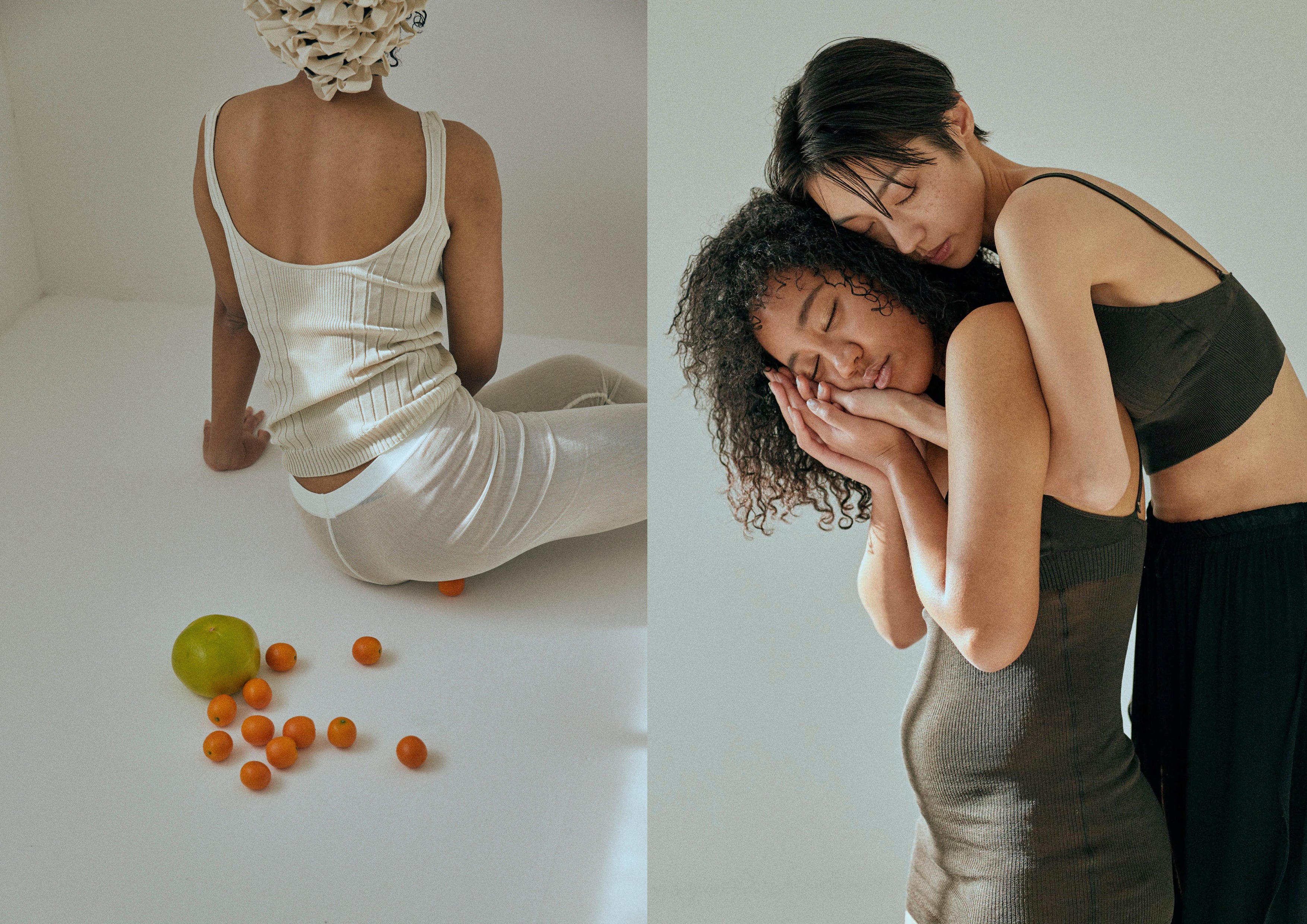 より肌に心地よい素材を選んで作り上げたコレクション。シルク100%素材のセットアップやスーピマコットンとペニーシルクをミックスした糸で甘く編み上げたワンピースなど、ブラトップと相性の良いウェアも数量限定で展開中です。