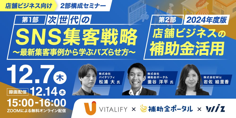 【12/7(木) 店舗ビジネス向け】2024年度版!補助金活用/次世代のSNS戦略 〜最新集客事例から学ぶバズらせ方〜