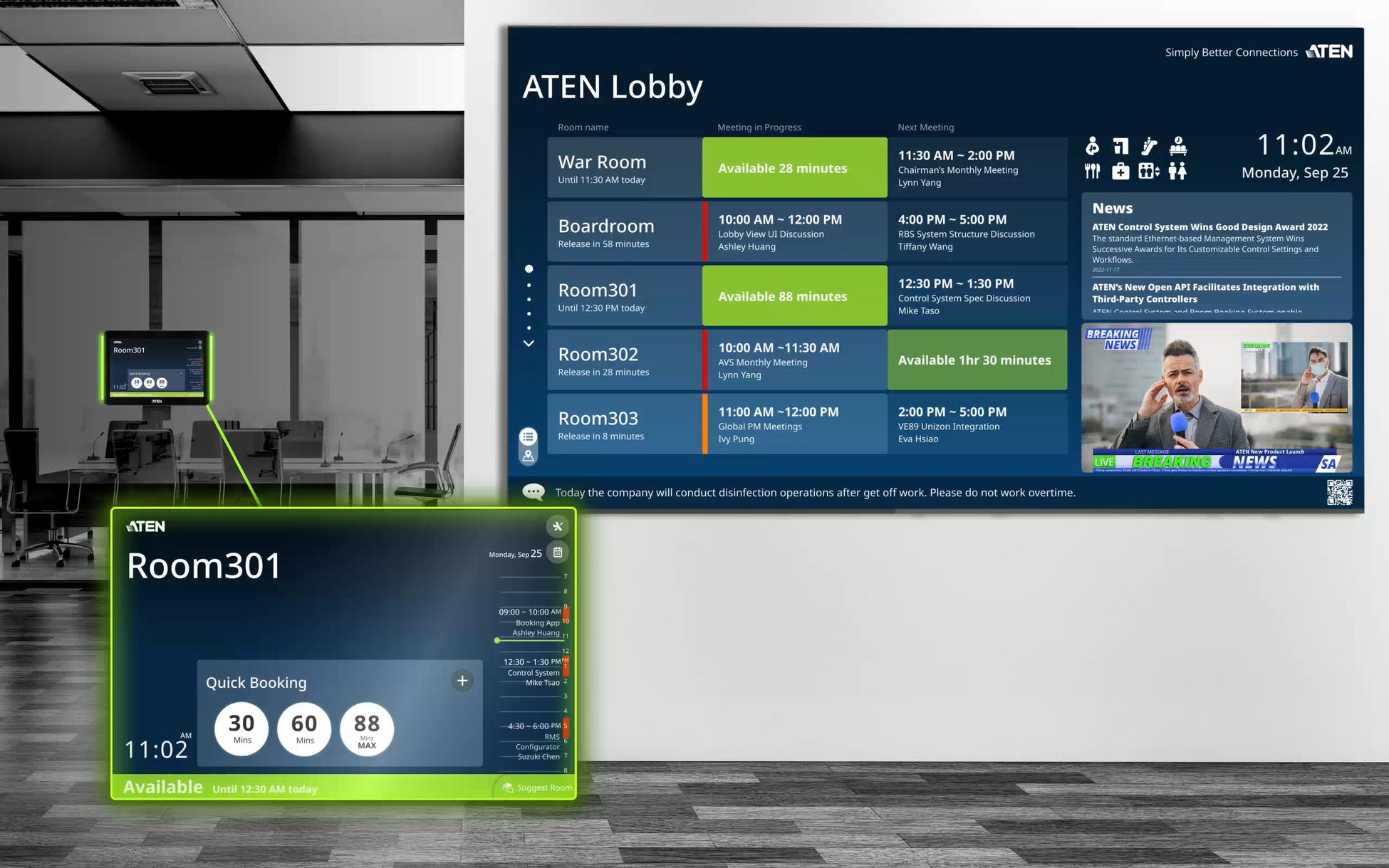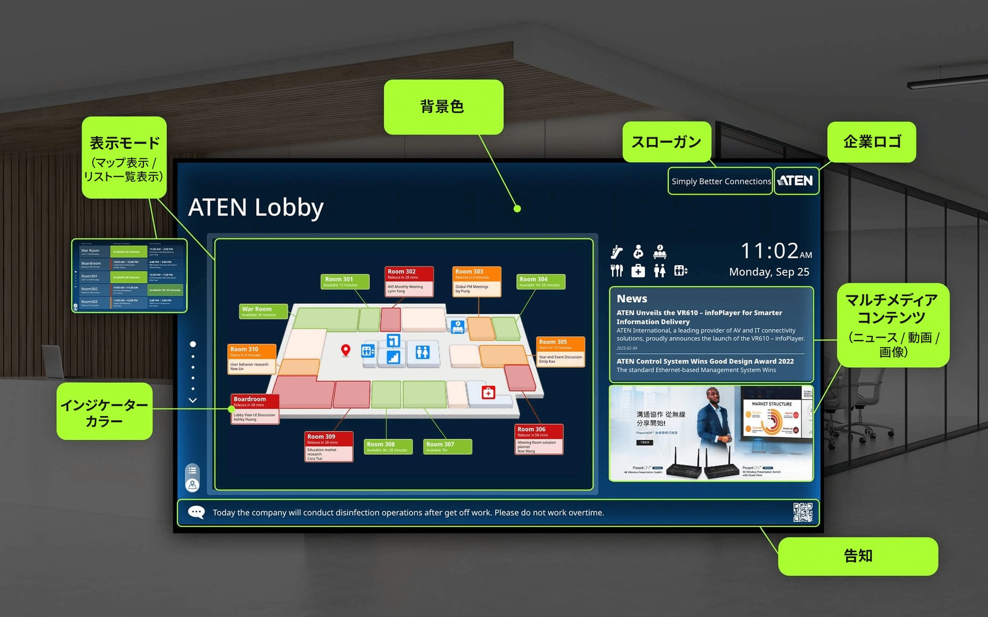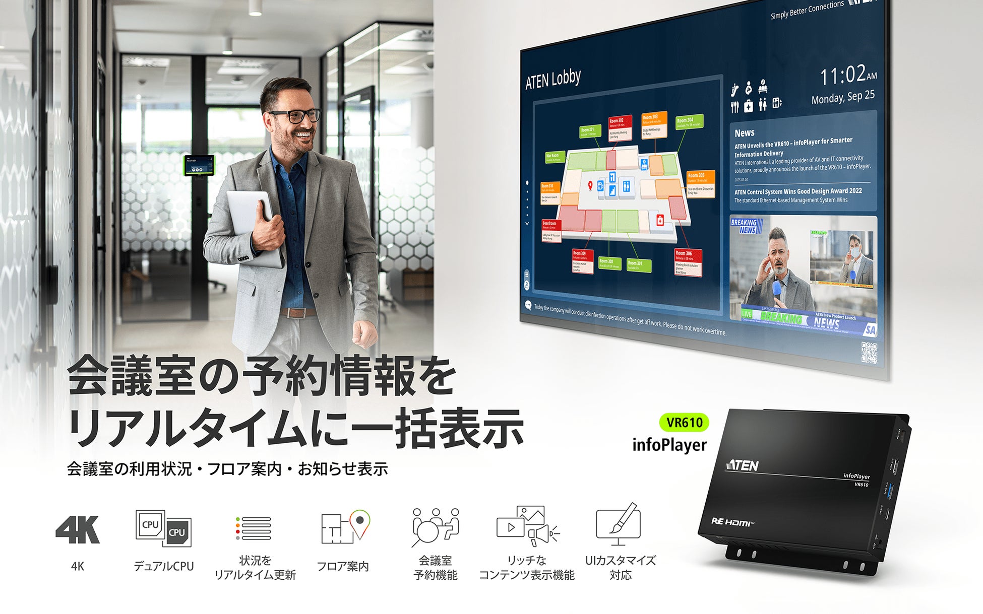 【ATEN 新製品】簡単操作ができる会議室の予約表示端末「VR610」が登場。会議室の予約情報やお知らせをリアルタイムで一括表示