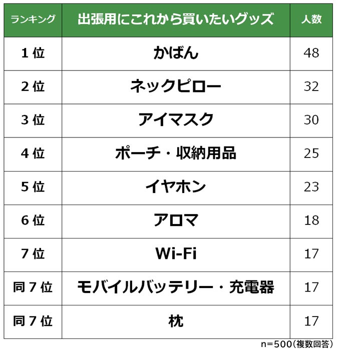【出張時のおすすめグッズランキング】男女500人アンケート調査