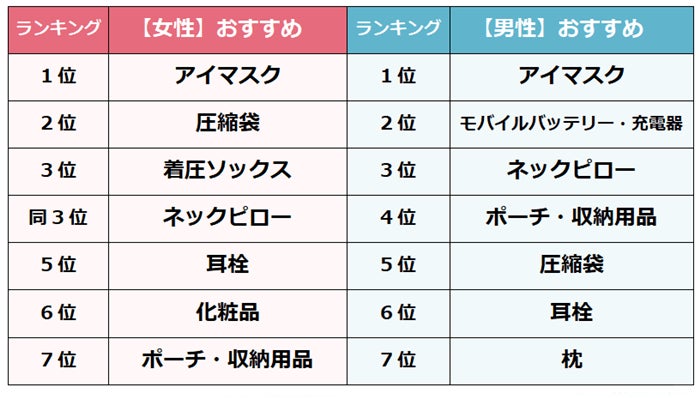 2位以下は「ネックピロー」「アイマスク」「ポーチ・収納用品」と続きます。