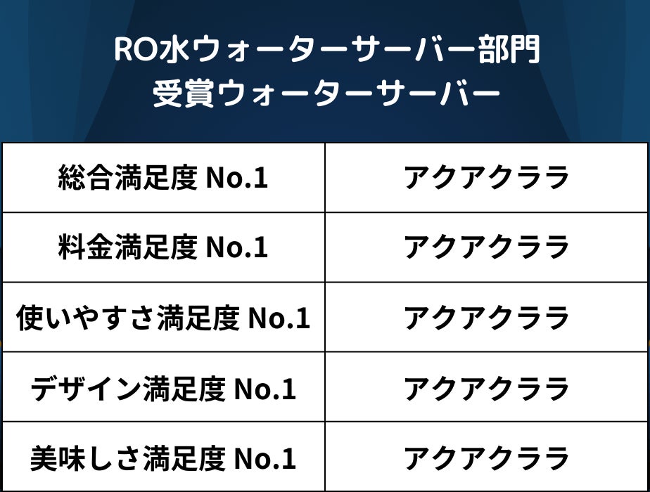 アクアクララが、全ての受賞項目で満足度No.1を受賞しました。