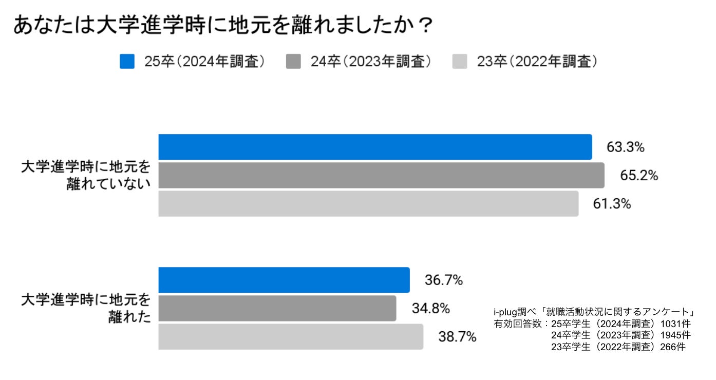 63.3%の25卒学生が「大学進学時に地元を離れていない」と回答しました。