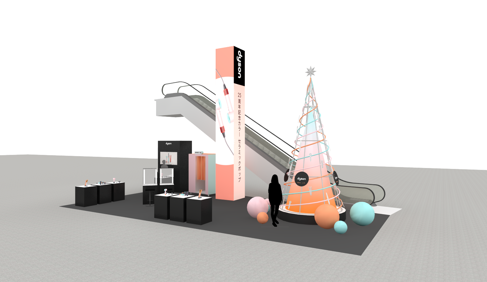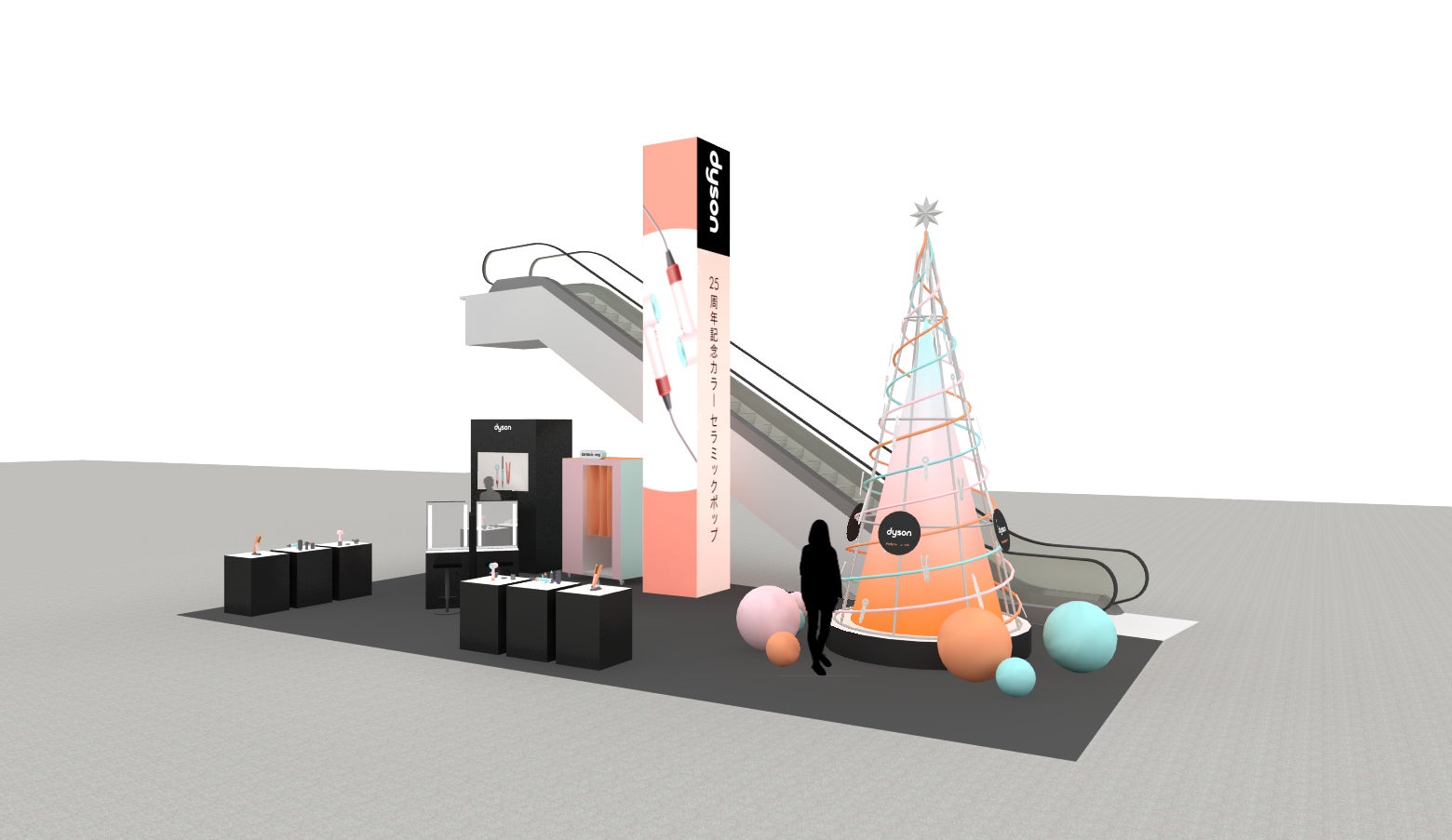 ■内容:会場では、ダイソン ヘアケア製品の販売だけでなく、セラミックポップカラーの色鮮やかなクリスマスツリーでの撮影をはじめ、セルフフォトブースでの写真撮影、スタイリング体験、製品展示を予定しています。イベントでのSNS投稿特典や、製品体験特典、また製品ご購入の特典など、複数の特典をご用意しています。