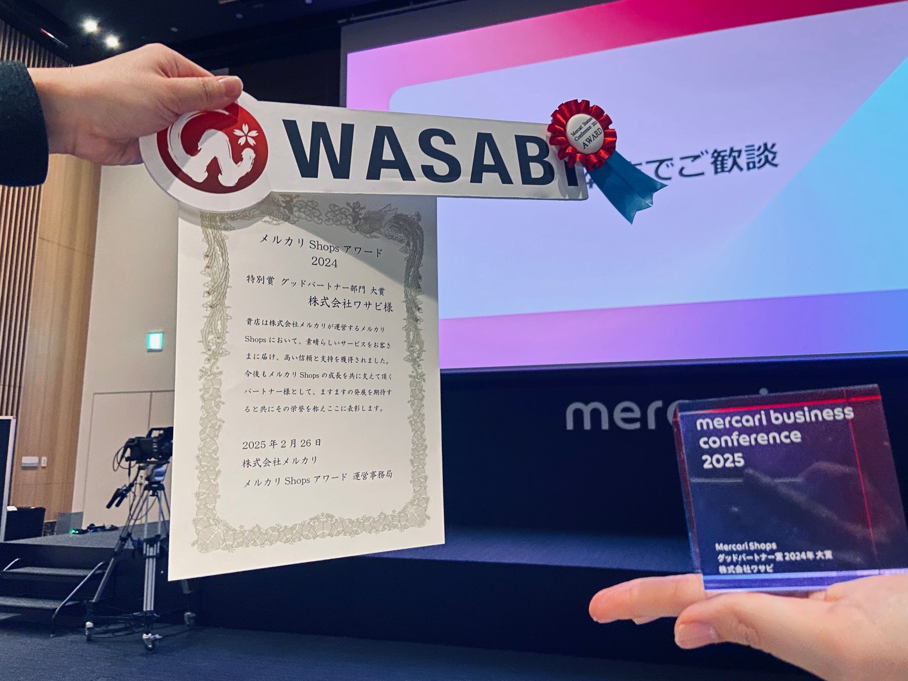 株式会社ワサビ(本社:大阪府大阪市 代表取締役:大久保裕史 以下、ワサビ)は株式会社メルカリ(以下、メルカリ)が開催するMercari Business Conference 2025において「メルカリShopsアワード 2024 グッドパートナー賞」(※注1)の大賞を受賞致しました。
