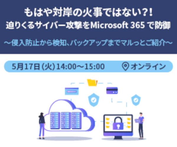 【2022年5月17日(火)オンライン開催】もはや対岸の火事ではない?!迫りくるサイバー攻撃をMicrosoft 365 で防御 ~侵入防止から検知、バックアップまでマルっとご紹介~