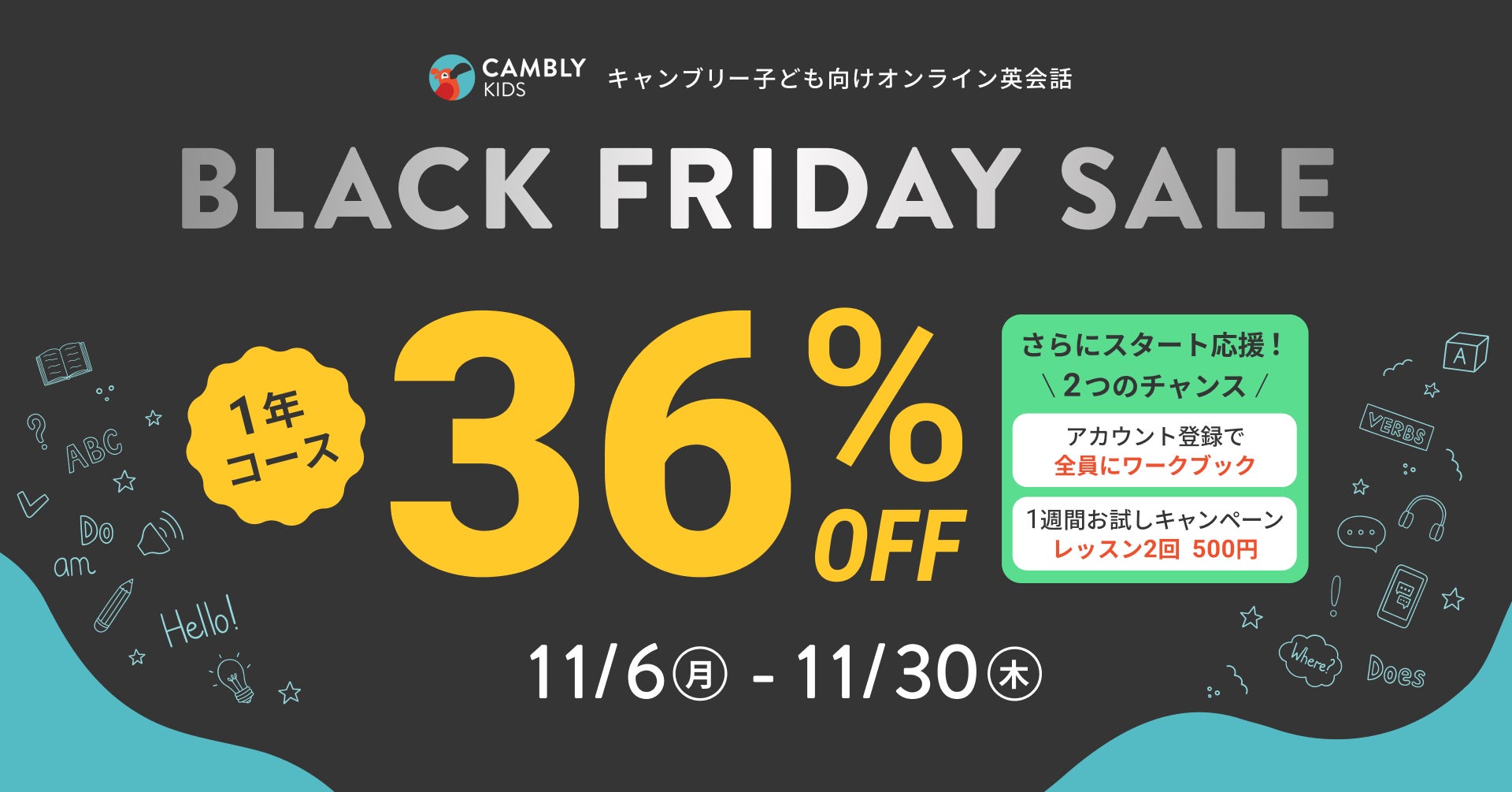 年最大級の1年コース受講料36%OFF & 2つのスタート応援チャンス!BLACK FRIDAYセールを開催【子ども向けオンライン英会話CAMBLY KIDS(キャンブリーキッズ)】