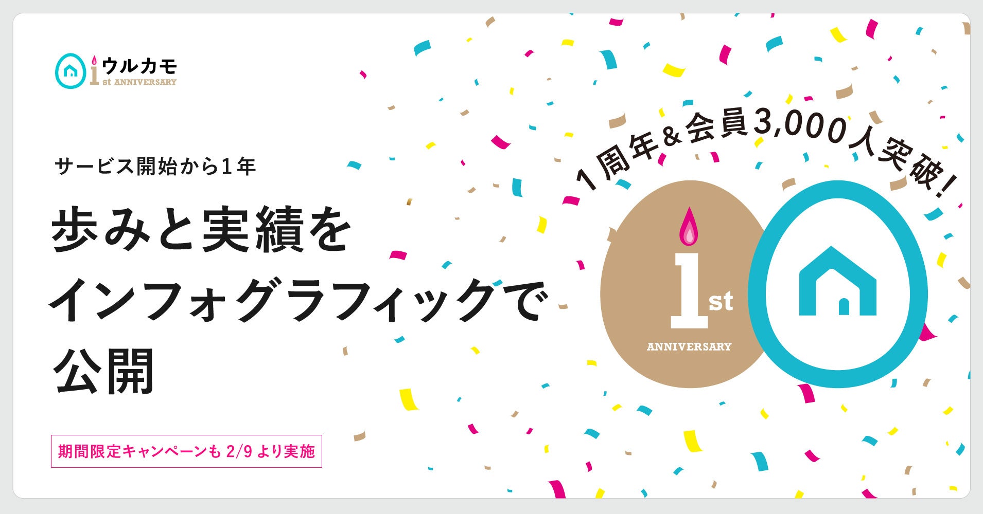 1周年を記念し、この1年の歩みや実績を振り返るインフォグラフィックを公開すると共に、「1周年&3,000名会員登録ありがとうキャンペーン」も期間限定で開始します。(キャンペーン詳細 https://note.com/urucamo/n/nbb33b29fce6f)