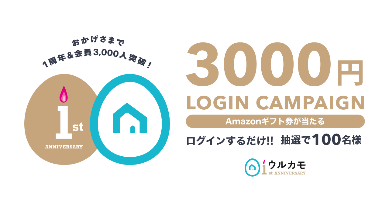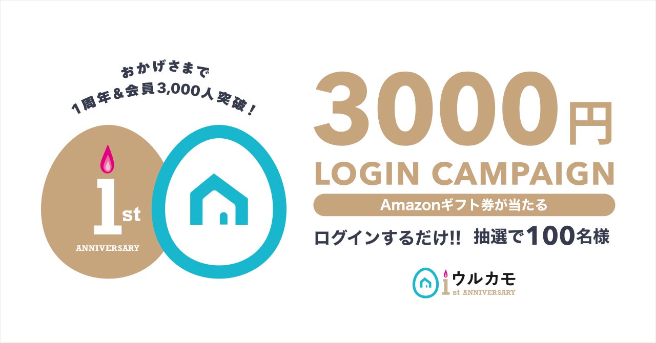 1周年の感謝を込めて、抽選で100名様にAmazonギフト券3,000円をプレゼントするログインキャンペーンを2月9日より実施します。
