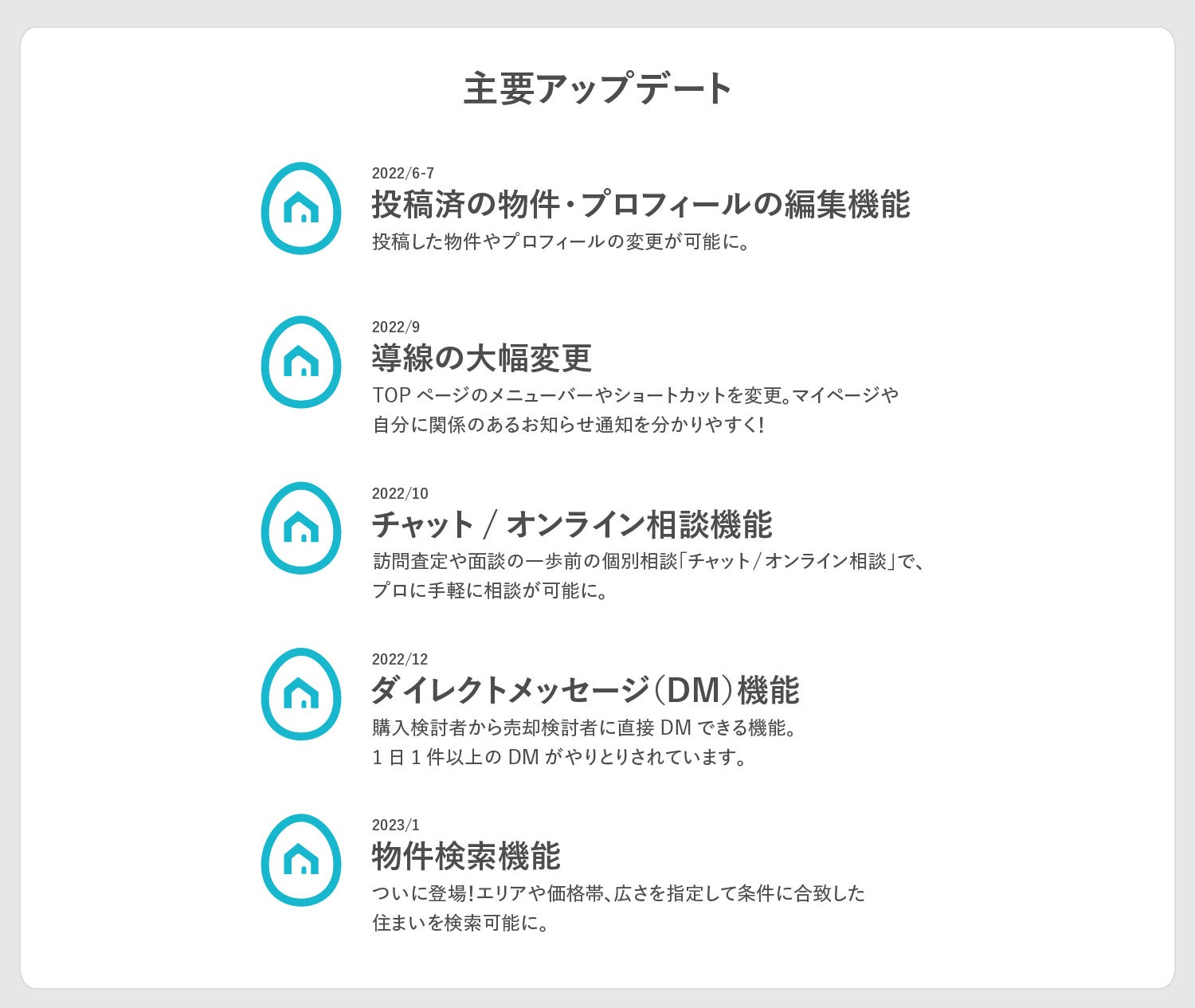 その中でも、2022年12月に機能追加したDM機能は、個人間の不動産取引におけるユーザー体験を大きく変えるものでした。DM機能により、購入検討者が売却検討者(家の持ち主、投稿者)に直接質問や内見の希望を送ることができるようになり、それまで以上にリアリティのある売買意向の交換が可能になりました。12月5日にDM機能を追加して以降、1日1件以上のDMがユーザー間でやり取りされており、ユーザー同士がダイレクトにやり取りをして生まれた内見もすでに発生しています。