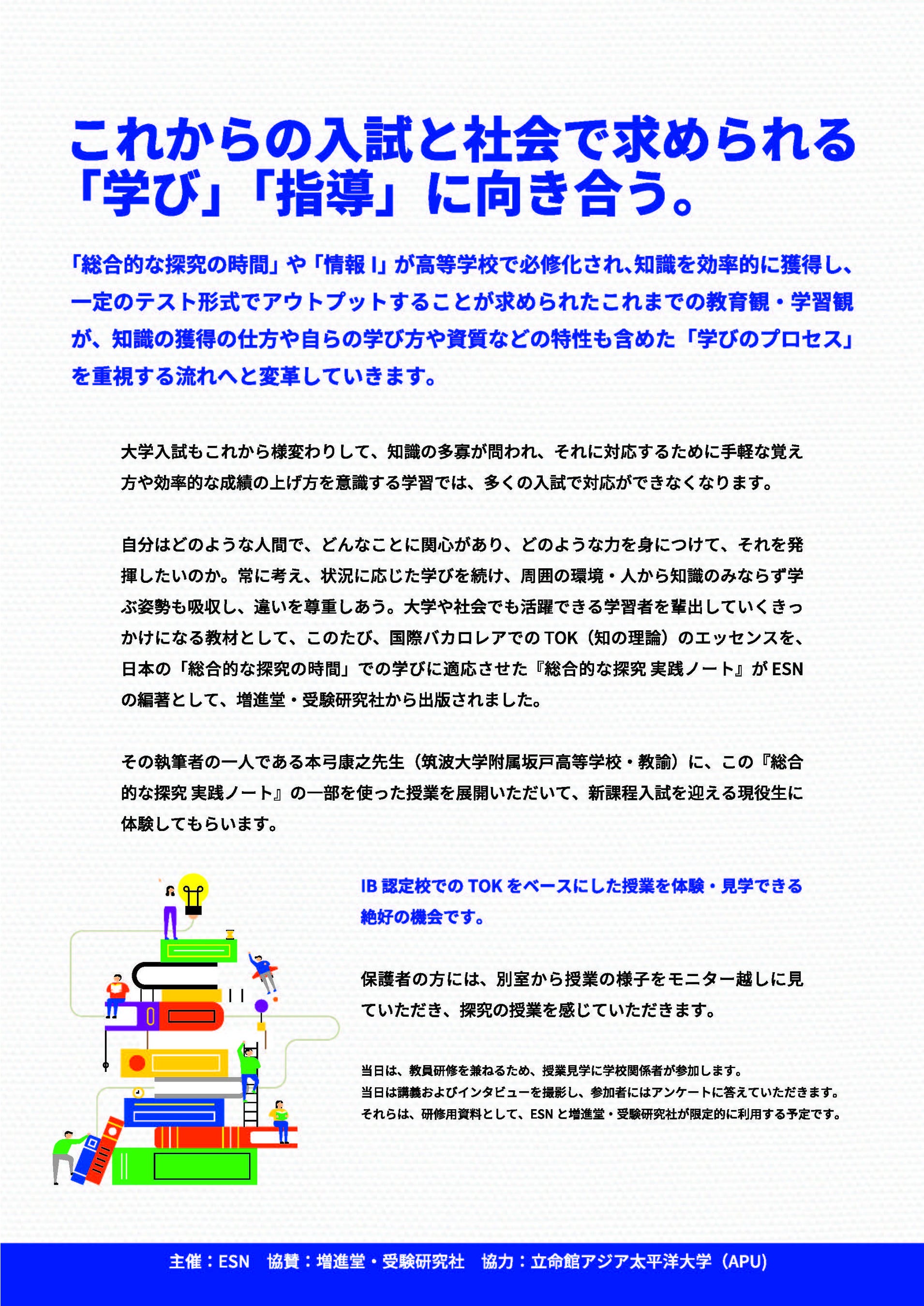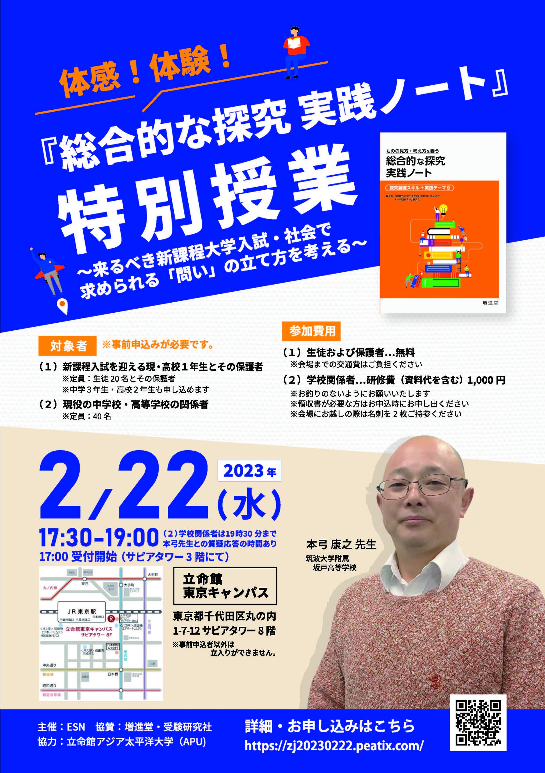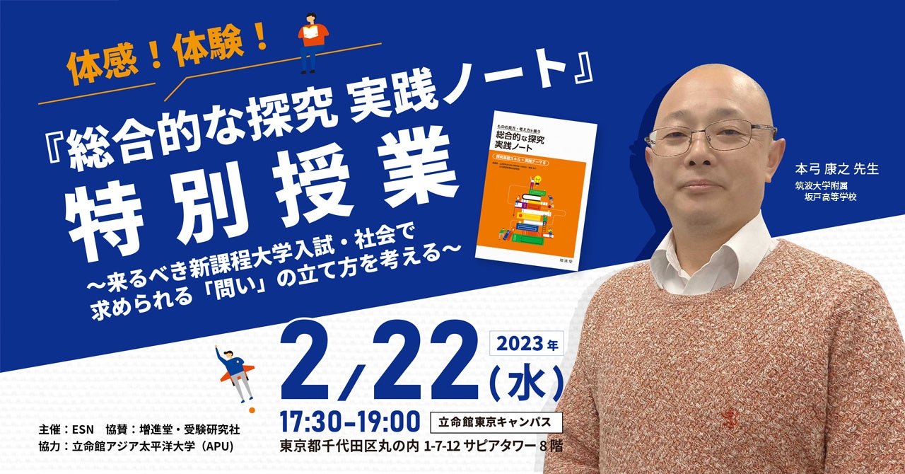 探究学習の模擬授業「体験」「見学」会を実施!ESN主催/増進堂・受験研究社協賛/立命館アジア太平洋大学協力!『総合的な探究 実践ノート』特別授業を2月22日開催!対象は高校1年生と学校関係者
