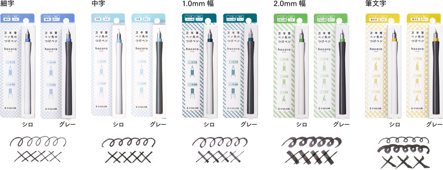 【万年筆ペン先のつけペン hocoro ラインアップ】 5種類の字幅