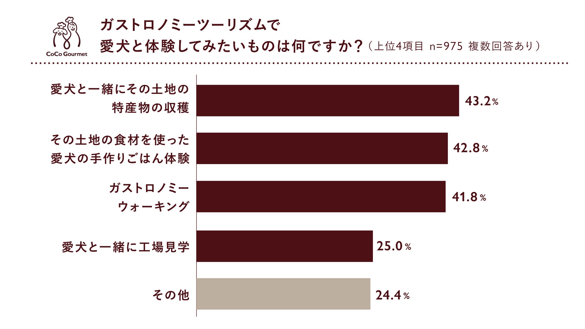 愛犬と体験したいガストロミーツーリズムのアクティビティは上位3つが多数。