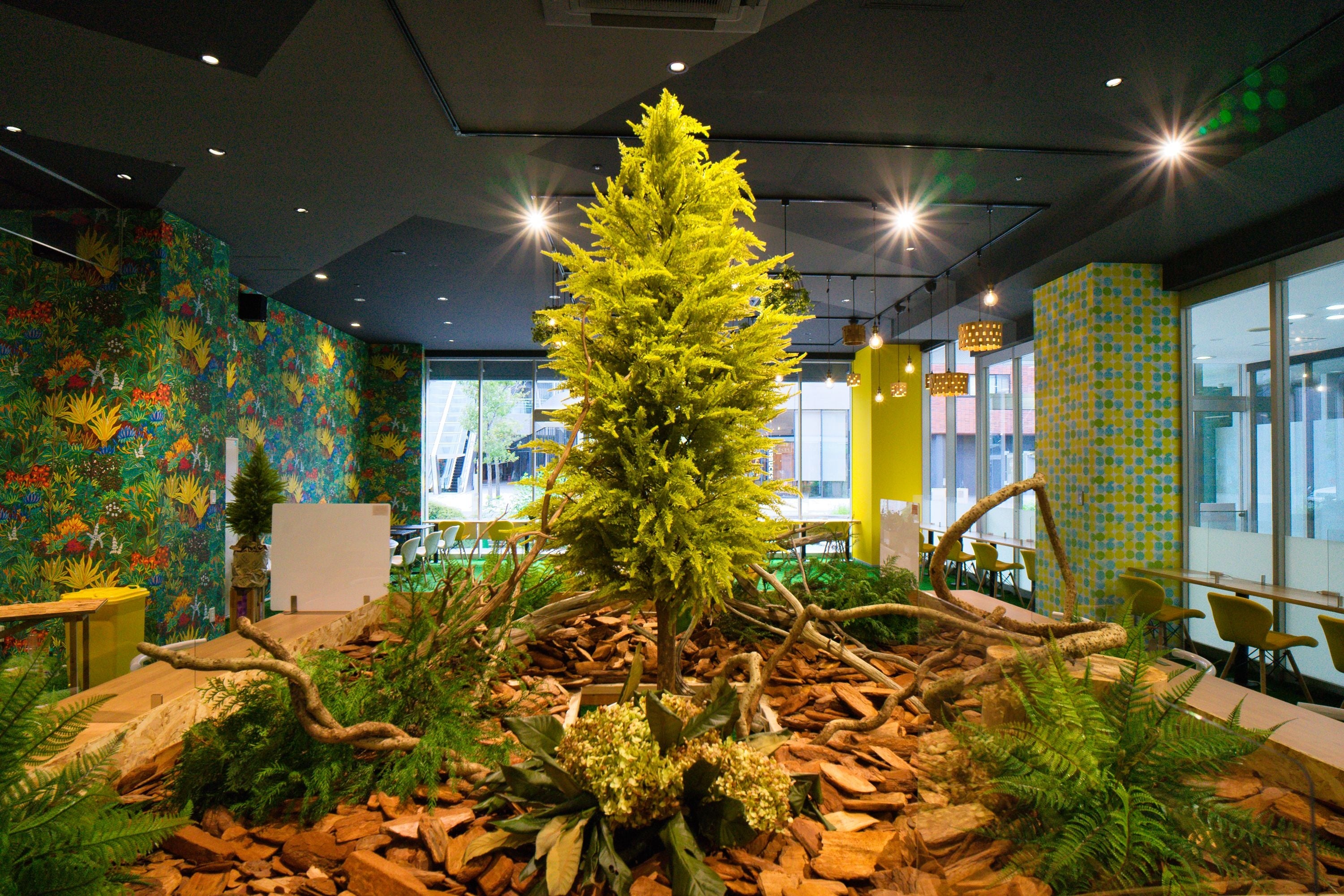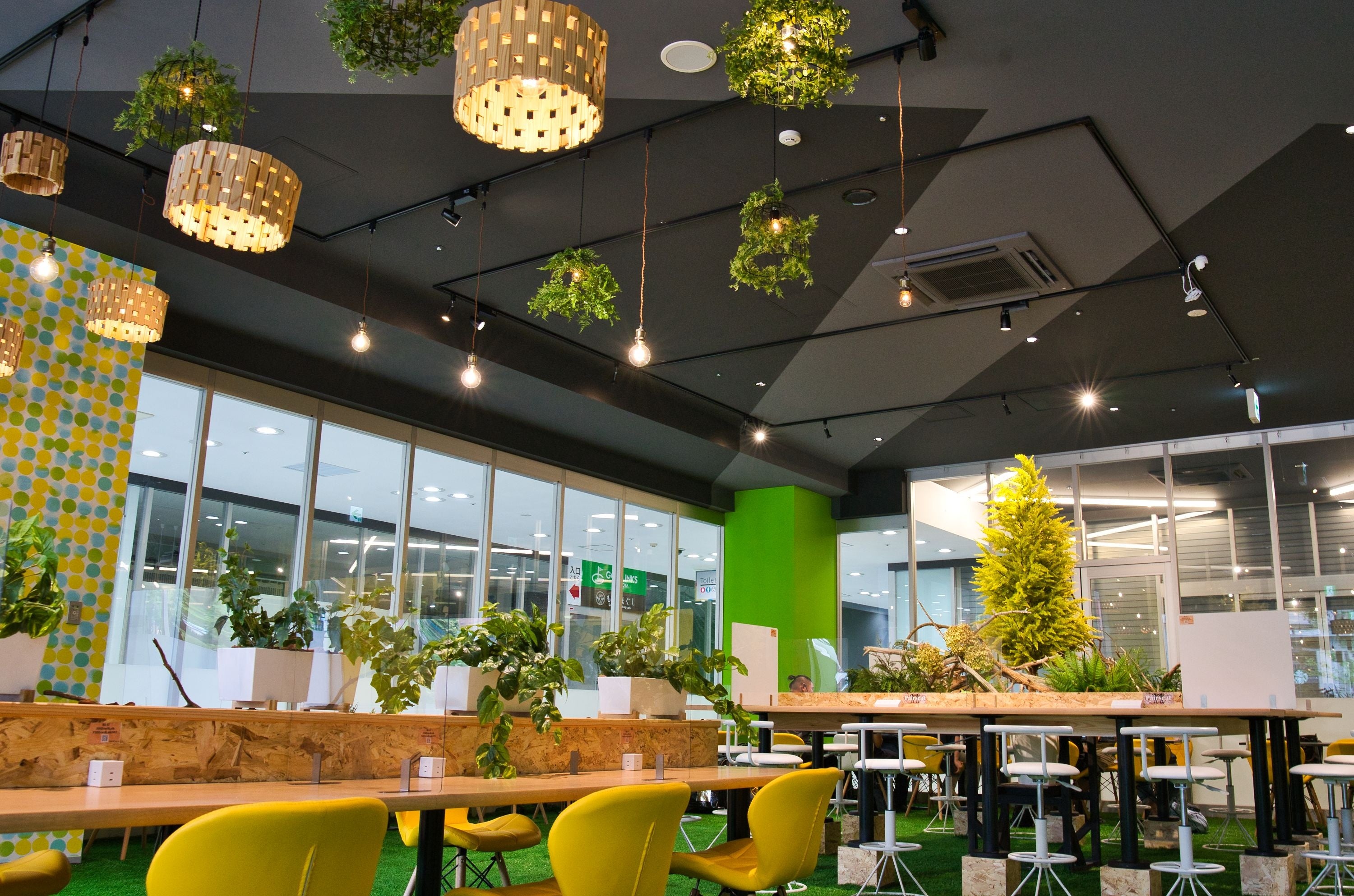 セルフカフェささしまライブ店の特徴は全面人工芝でおしゃれで癒しの空間。
