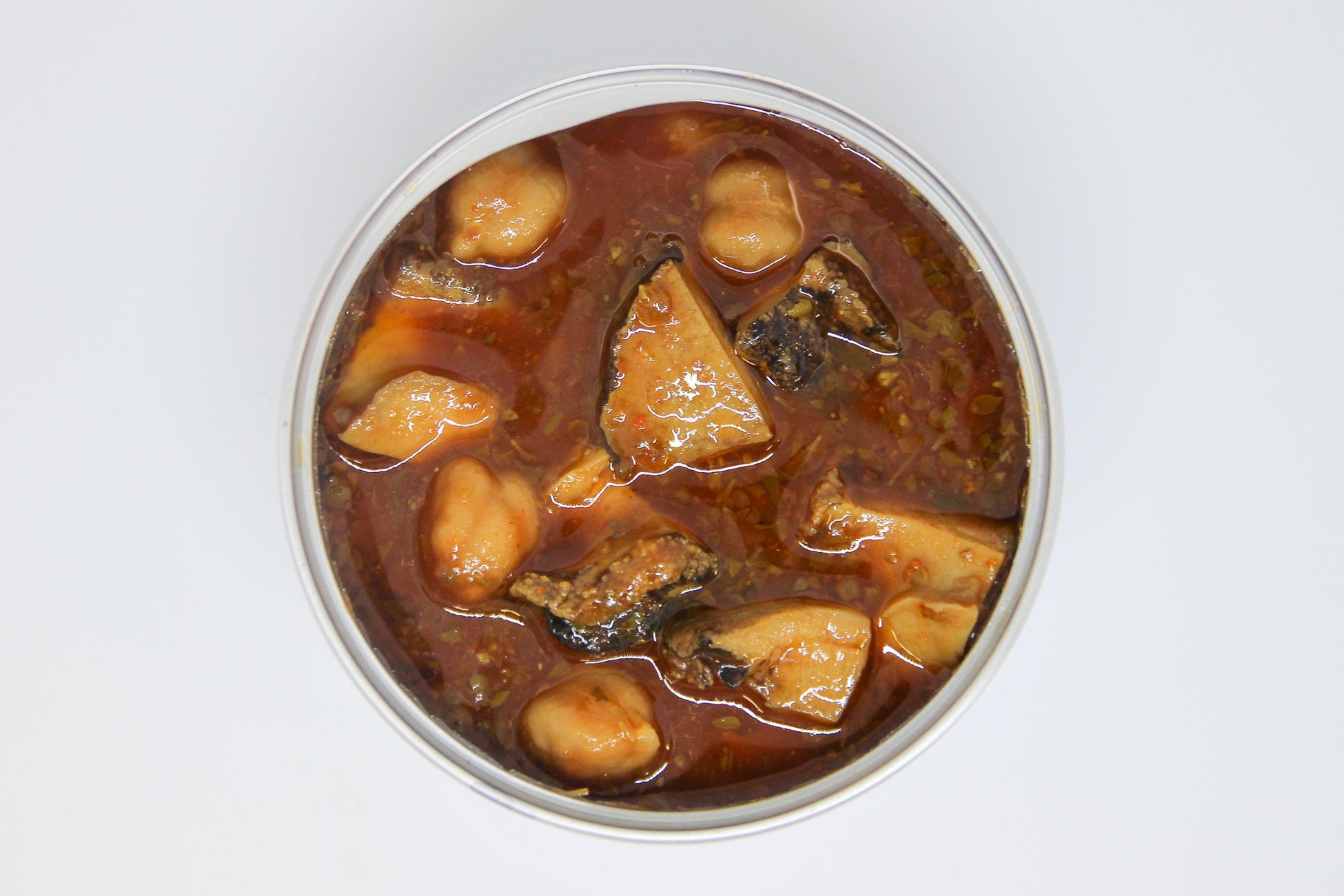 ・原材料名:あわび(三陸産)、ひよこ豆(米国産)、クールブイヨン(セロリ、玉ねぎ、人参)、トマトピューレ、オリーブオイル、レモン果汁、クミン(パウダー)、オレガノ(パウダー)、食塩、唐辛子