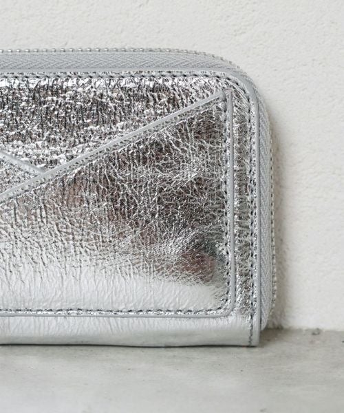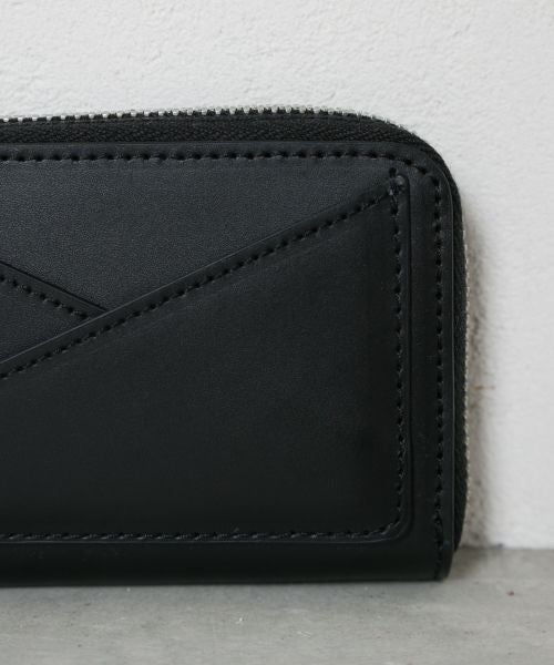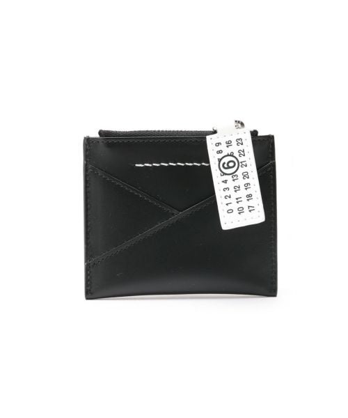 カーフレザーの「ジャパニーズ」6ウォレット。2022年の秋冬コレクションのアイテムとして発表されたジャパニーズ6ウォレットは、発表以来、MM6を代表する象徴的なアクセサリーになりました。日本の伝統的な折り紙にインスパイアされた、フロントの三角形のフォルムが特徴のデザインです。ジップ部分のレザータグには、メゾン マルジェラの「ナンバリング ロゴ」の中から、「6」のナンバーのみを際立たせた新しいアートワークが施されています。