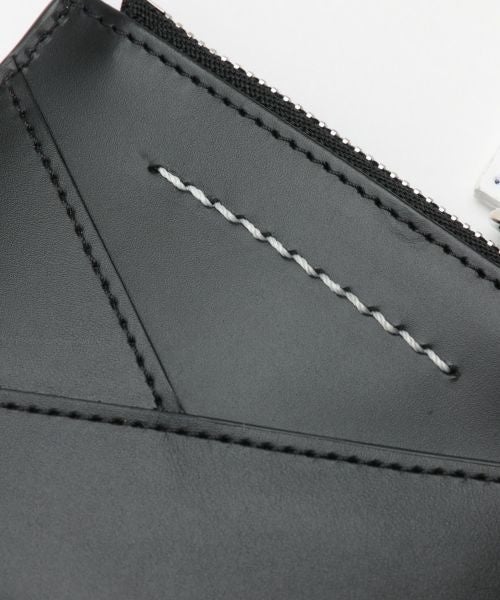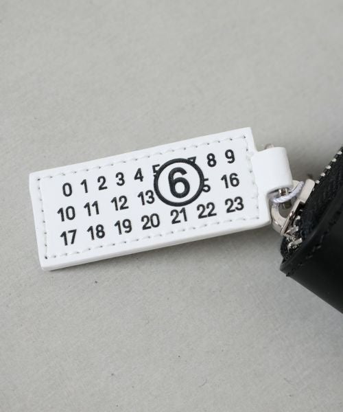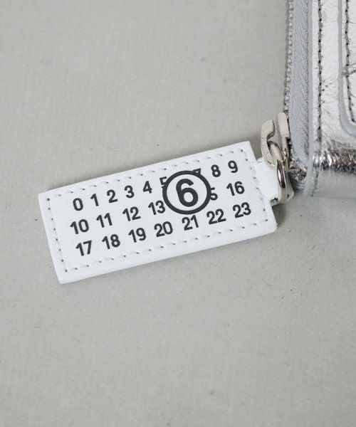 無地のカーフレザー製の「ジャパニーズ」6ウォレット。2022年の秋冬コレクションのアイテムとして初めて発表されたこのレザーアイテムは、MM6を代表する象徴的なアクセサリーを新たな視点から解釈したデザインです。シルエットはフラットな形に仕上げられており、ファスナーのプルに「ナンバリング ロゴ」があしらわれています。タイムレスなアクセサリーであり続けるため、「ジャパニーズ」のアイテムは毎シーズン、サイズや素材を変えアップデートされています。