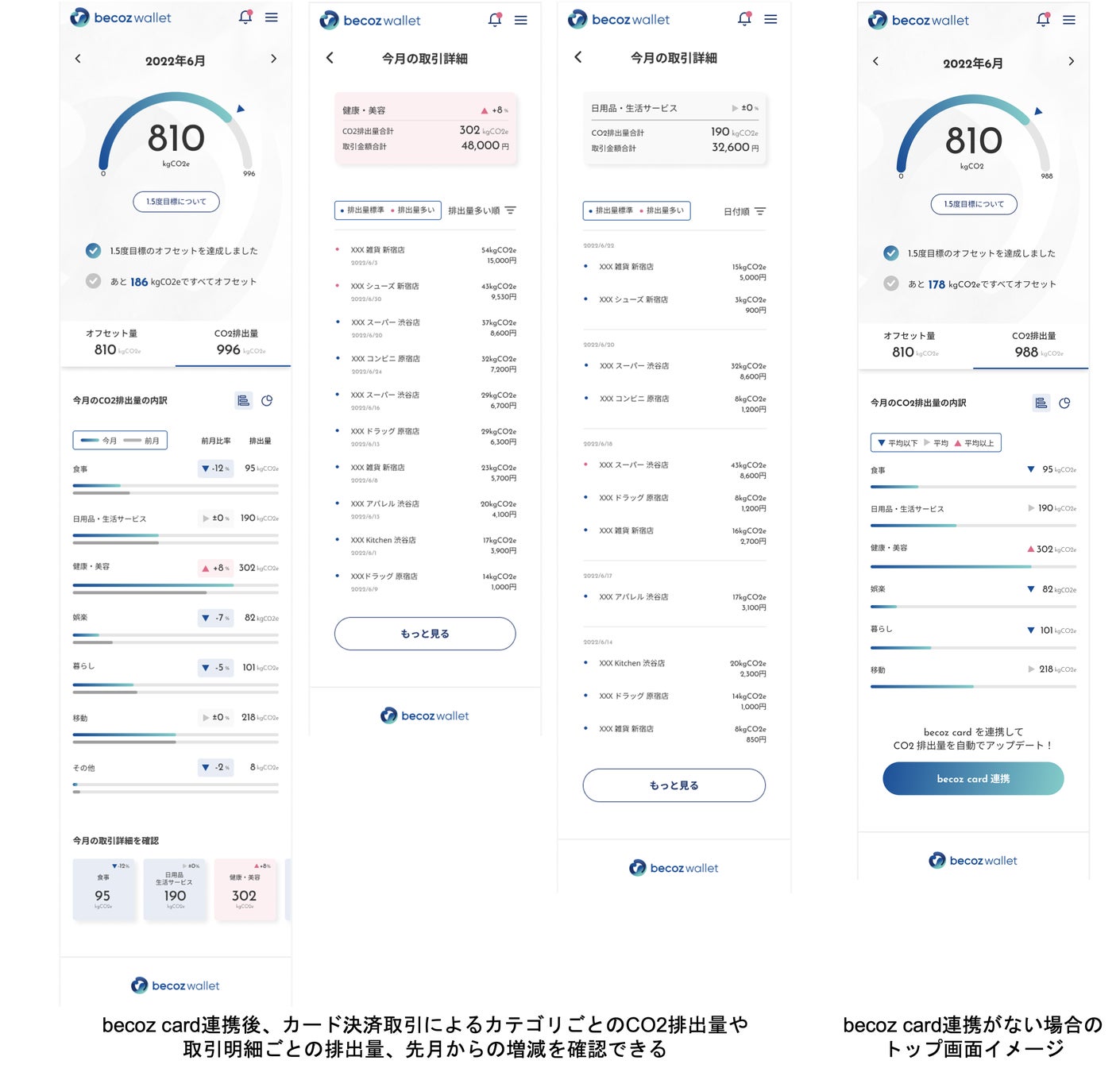 当社とクレディセゾンは既報の通り、カーボンニュートラル・クレジットカード発行に向け検討を進めてまいりました。クレディセゾングループが持つペイメントビジネスに関する幅広い技術・ノウハウ等の経営資源と、当社とその提携先であるドコノミーが持つAI活用・CO2排出量可視化に関する先進的な技術を掛け合わせ、「becoz card」を提供開始いたします。本サービスは、決済データを活用しCO2排出量を計算・可視化、そしてカード会員様の気候変動に配慮した行動を促す、国内初のコンセプトクレジットカードです。