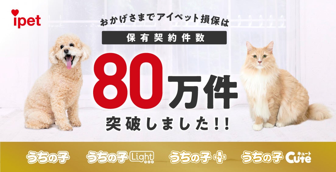 保有契約件数が80万件を突破することに至りましたのは、ひとえにお客さま、代理店、動物病院の皆さまのご支援とご愛顧の賜物と、深く感謝しております。