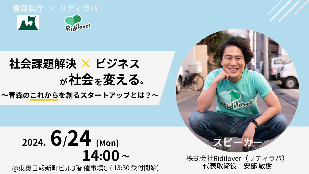 リディラバ 代表 安部敏樹が「社会課題解決×ビジネスが社会を変える。青森の“これから“を創るスタートアップとは?」をテーマに講演します