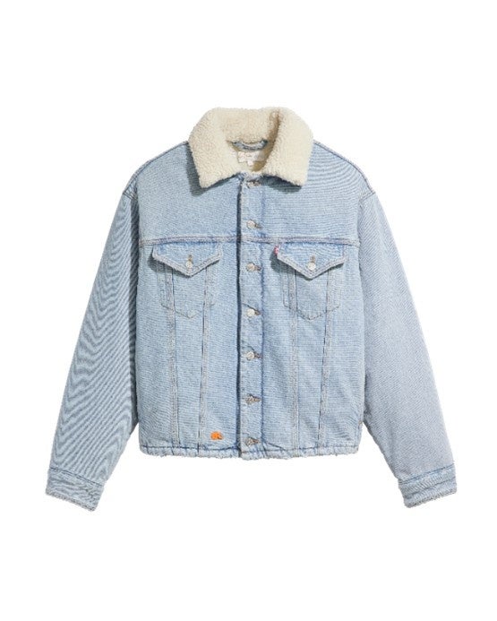 ライトインディゴ仕上げのデニムトップは、すべてのLevi's® x ERLコレクションとのセットアップを可能にし、コレクション全体の一体感を演出します。Levi's® x ERL Sherpa Truckerは短めのボクシーなフィット、そしてLevi's® x ERL Sherpa Duster Truckerはより長いシルエットです。やや厚めのLevi's® x ERL Overshirtは、シンプルでエレガントなトップス。Levi's® x ERL Denim Topは、より身体にフィットしたルックです。最後に、Levi's® x ERL Heritage Dressは、ドレープが美しいボリューミーなスカート。コレクション全体を通して、ネオンカラーのERLロゴの刺繍がランダムに施され、ユニークな奔放さを感じさせます。
