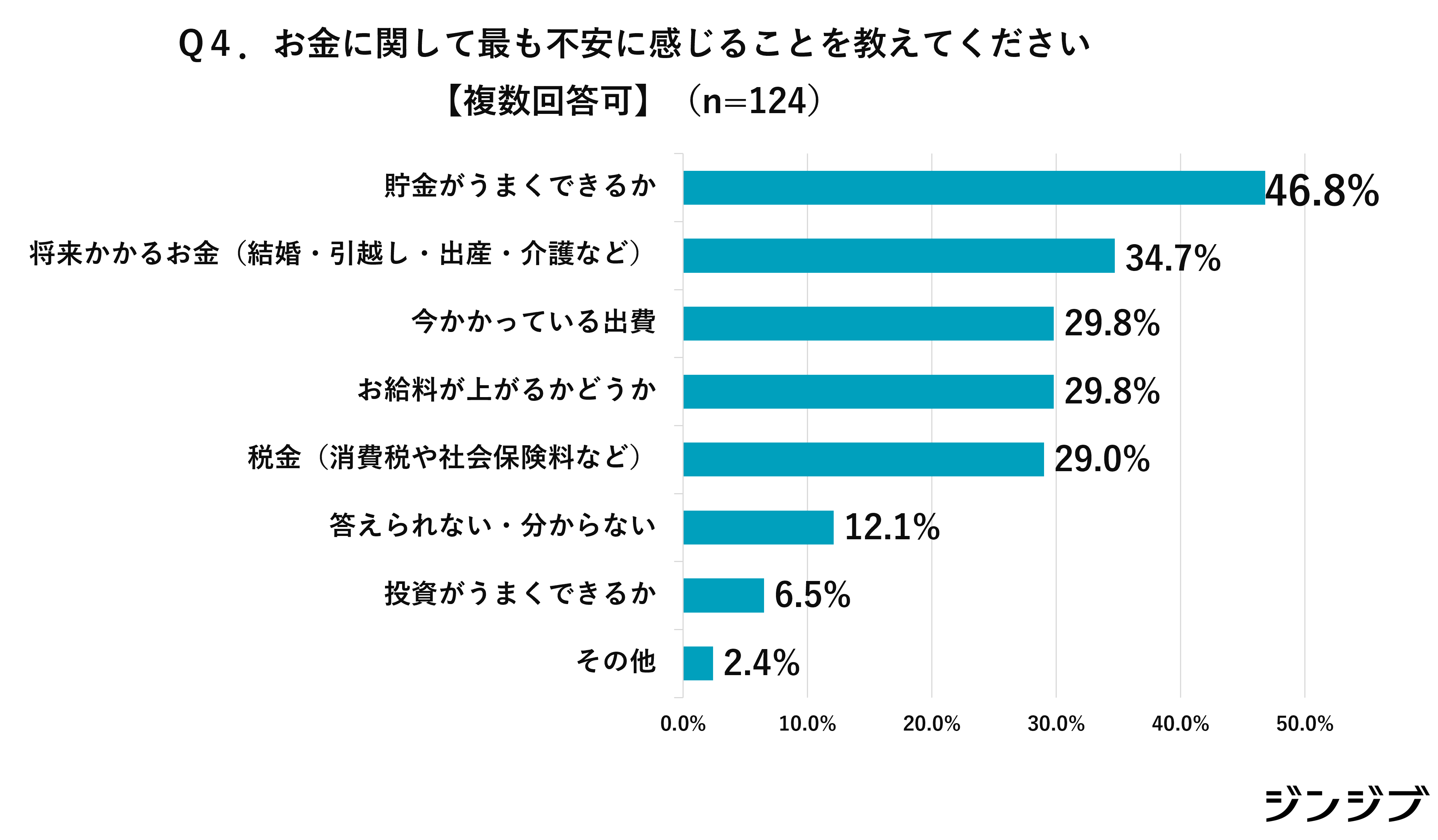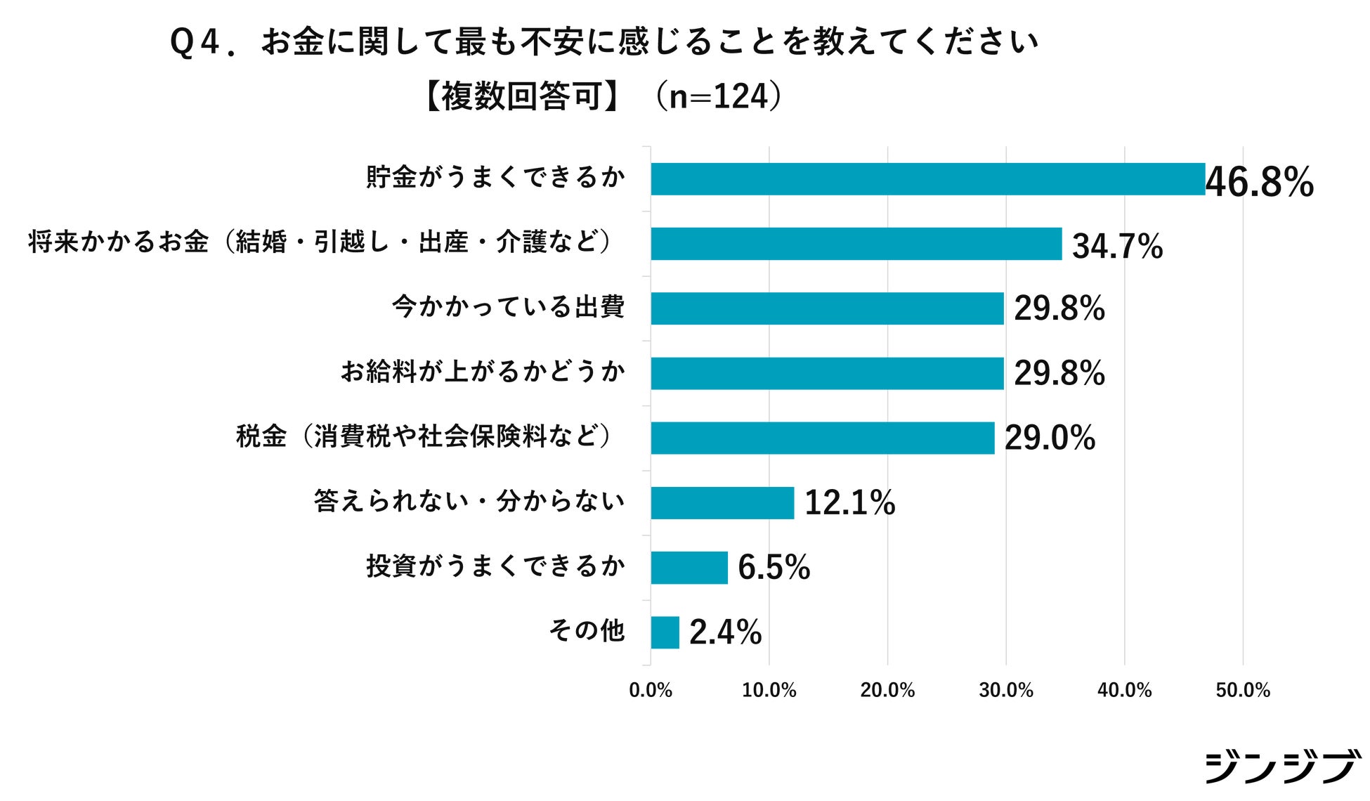 4.お金に関して最も不安に感じることを教えてください。【複数回答可】(n=124)