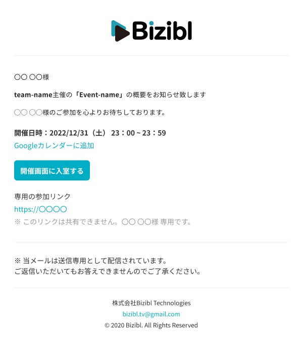 ・インポート完了と同時に、上図のように該当の申し込み者に対して参加URLの案内が届きます